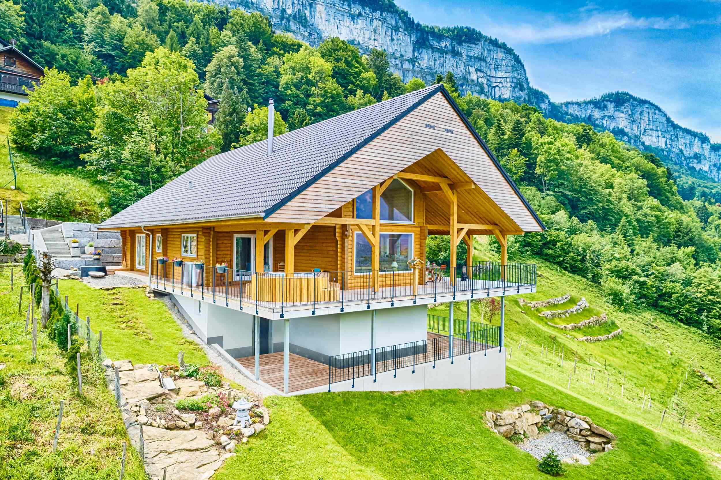 Entdecken Sie unser Blockhaus "Mikado bel étage" , das zeigt, wie Massivholz und klare Architektur zusammenfinden.