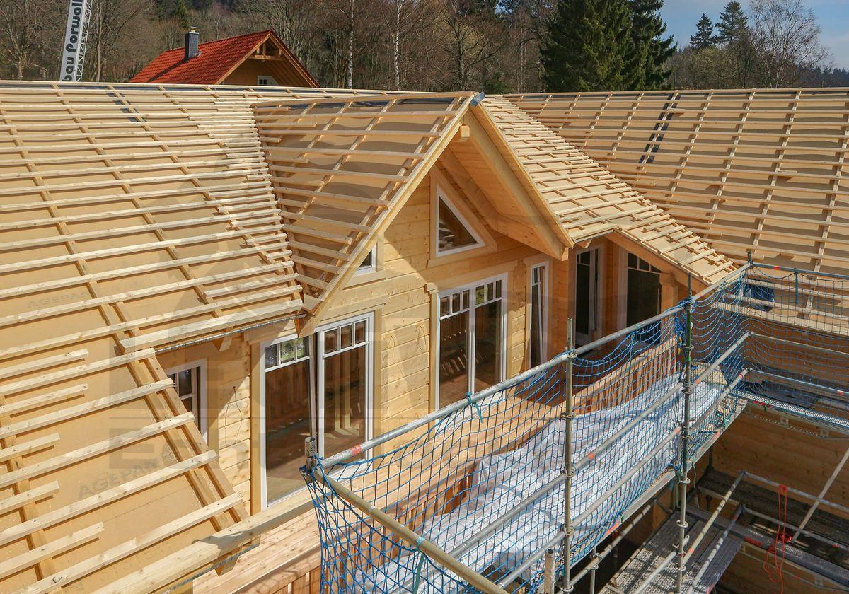 Satteldach, Sparren-Pfetten-Dach, 22°/42° Dachneigung,