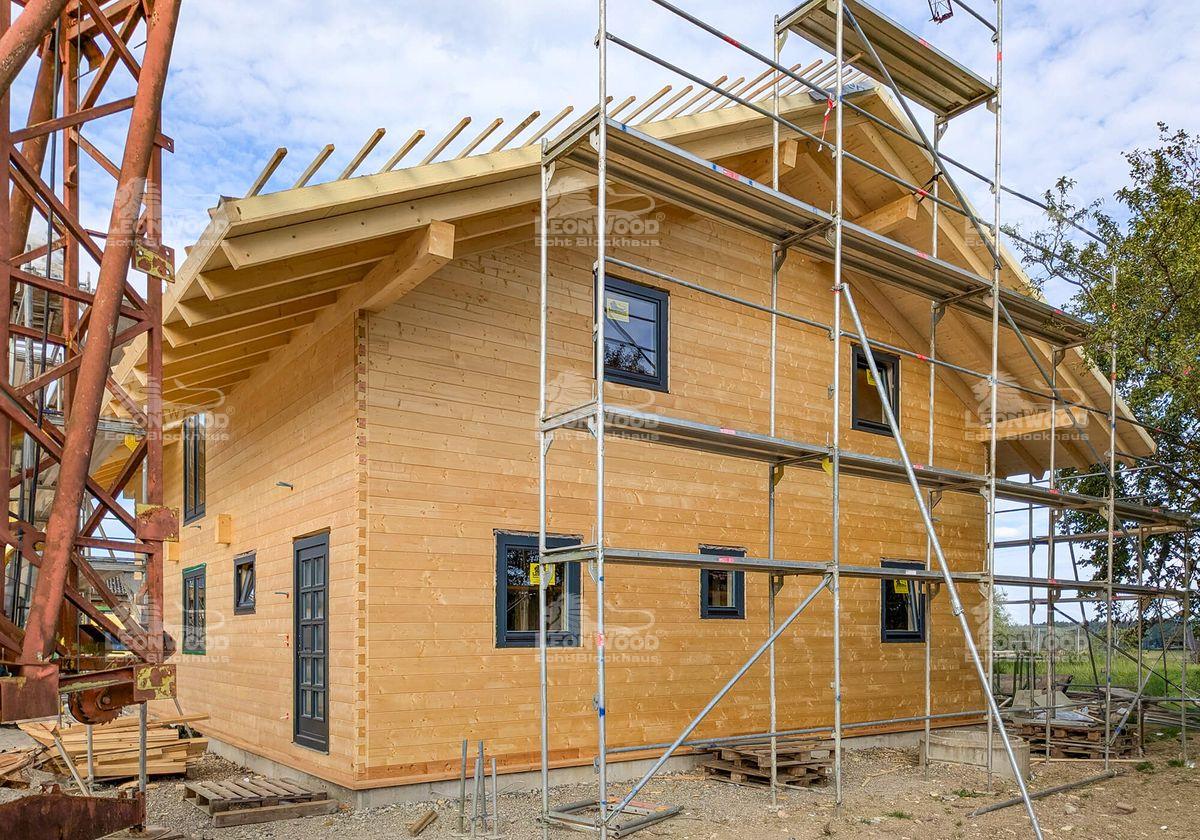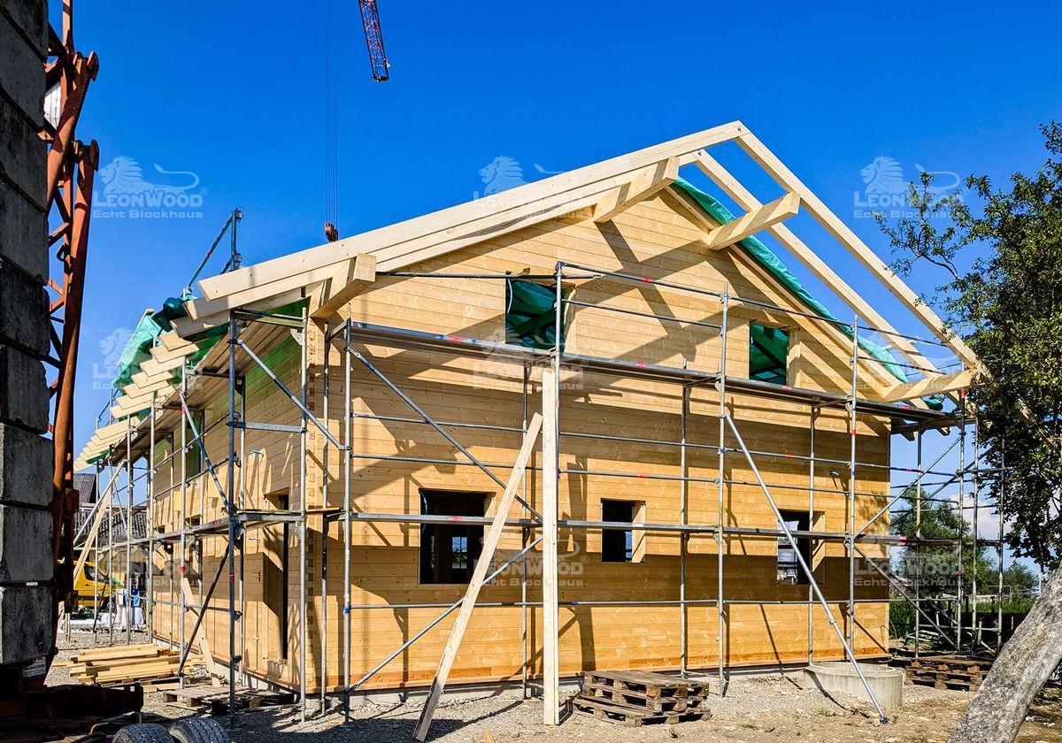 Giebelwände und Kniestock in Blockwandausführung (inkl. Korkdämmung)