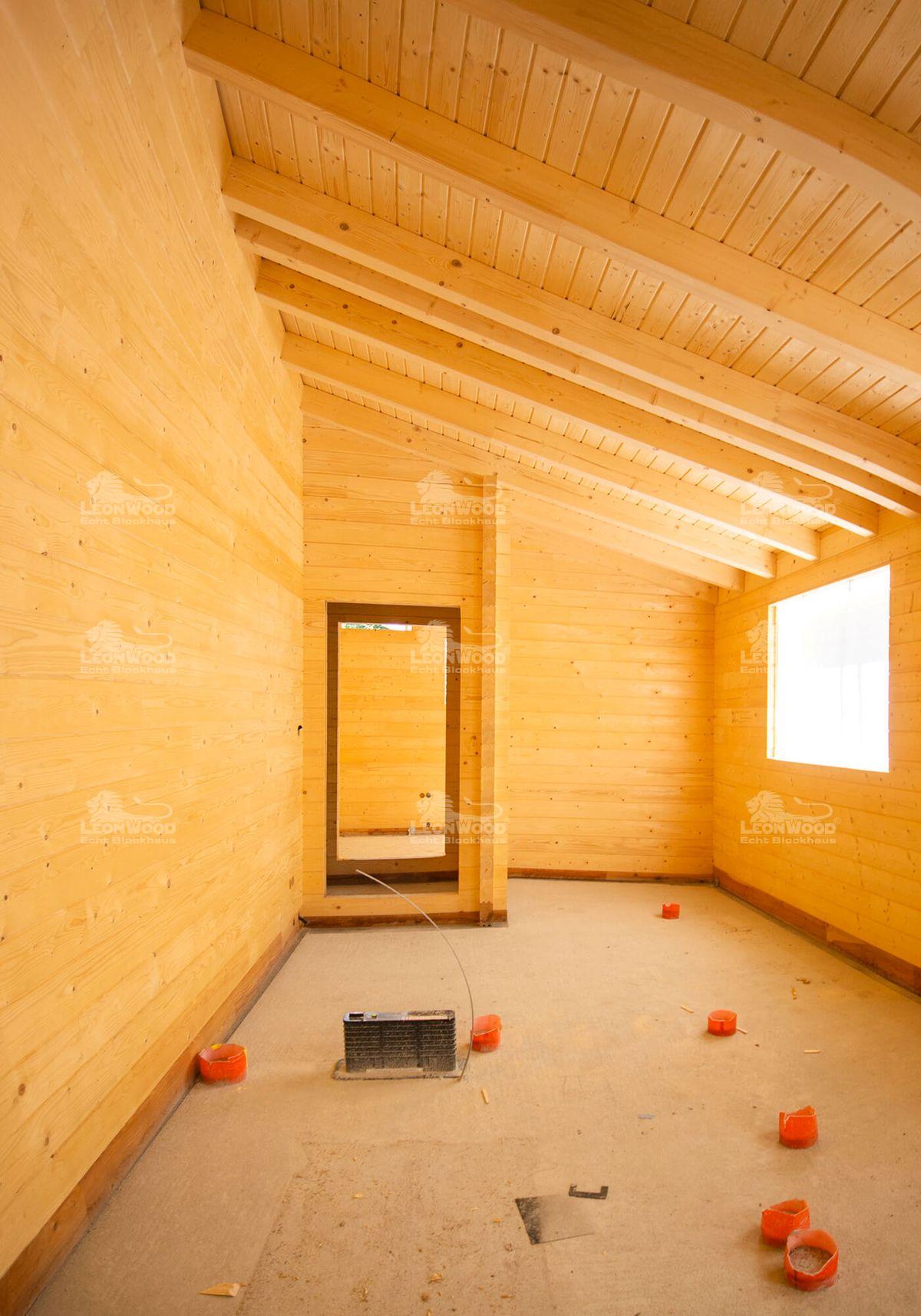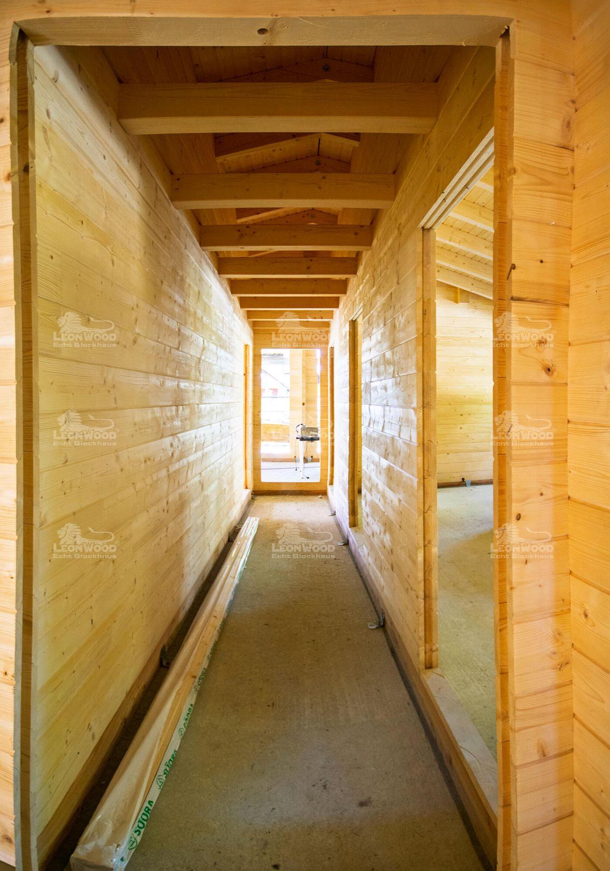 Innenwände: 92mm Blockbohlen-Innenwände, massiv Fichte;