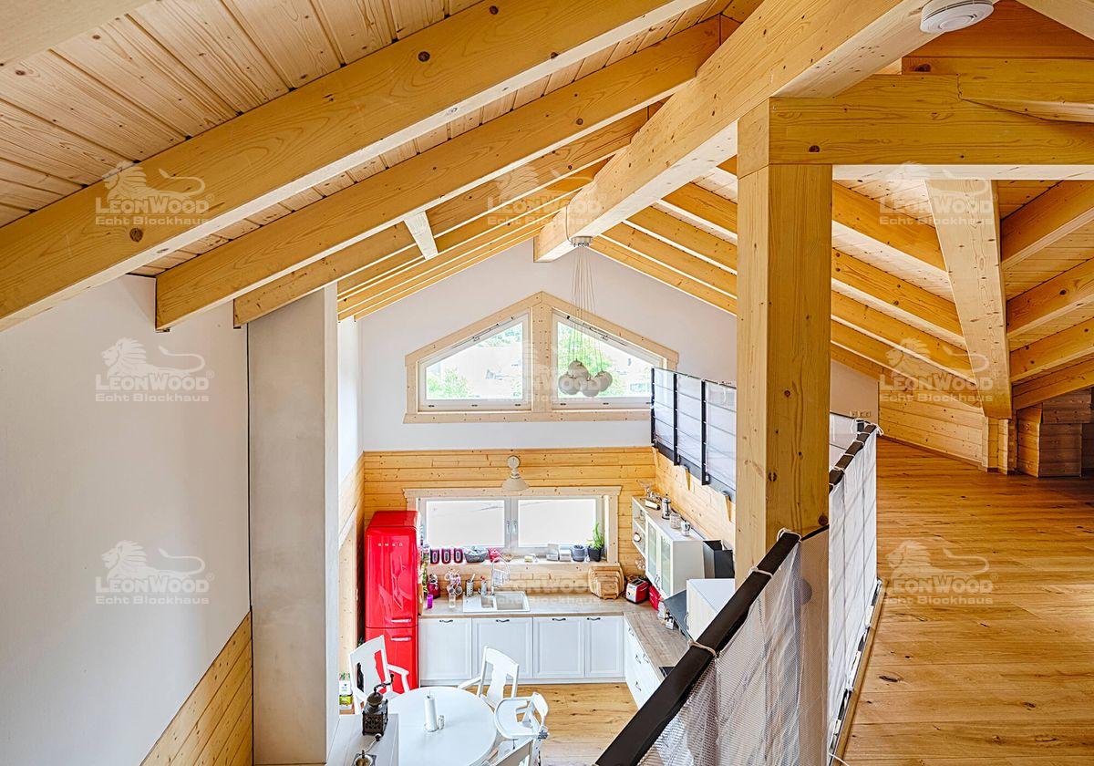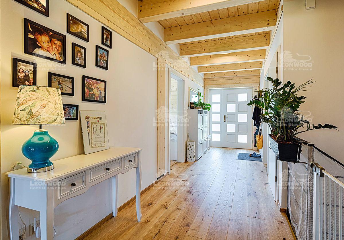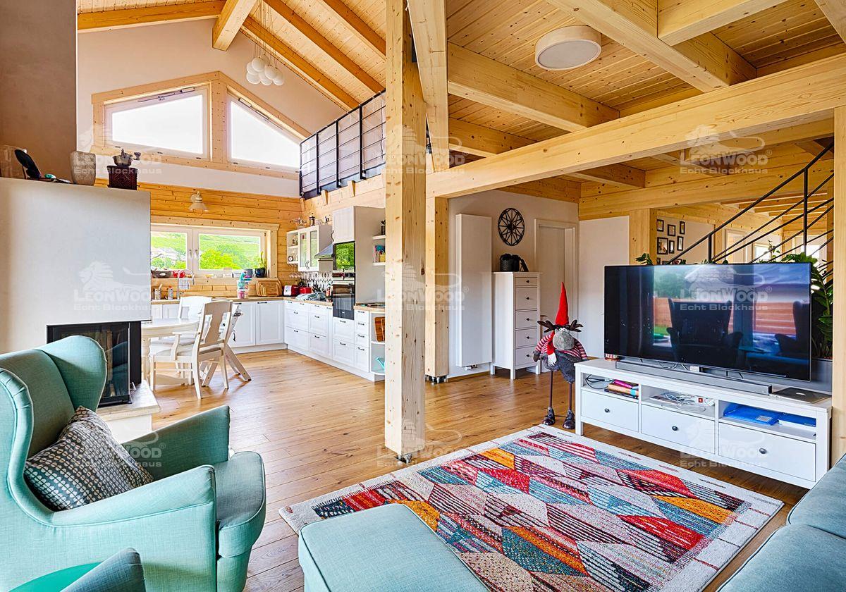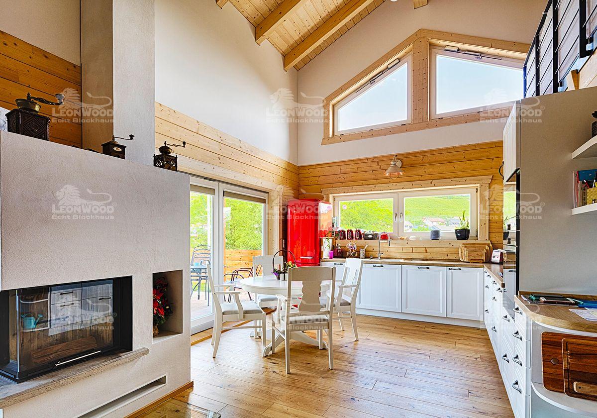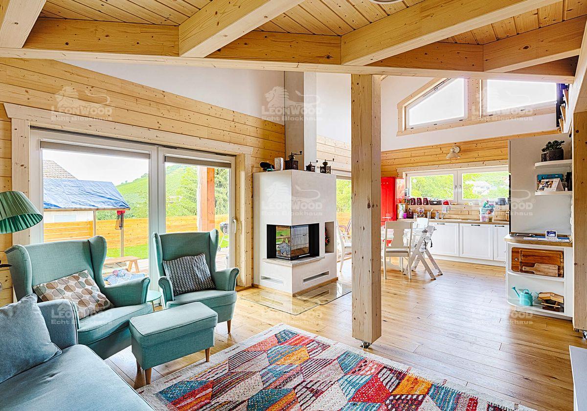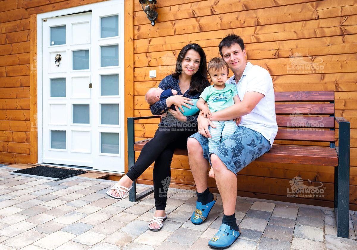 Grundsätzlich wollte unser Bauherren-Pärchen ein ökologisches Haus. Gerade im Hinblick auf die Energiewende und den Klimawandel war ihr Gedanke hin zu mehr Nachhaltigkeit ausschlaggebend. Der Baustoff Holz stand anfangs gar nicht so im Fokus, erwies sich dann aber als die optimale Variante: „Durch die Haustechnik und die verschiedenen, teilweise undurchsichtigen Baustoffe wird ein herkömmlicher Neubau immer komplizierter und vor allem auch wartungsintensiver“, erklärt der Informatiker. Die Möglichkeit mit Vollholz zu arbeiten erschien dem Familienvater am einfachsten und vor allem auch am ressourcenschonendsten, „ohne viel Schnickschnack und Technik.“ Das natürliche Raumgefühl gibt es sogar inklusive, freut er sich und hat dabei auch seine beiden Söhne im Blick: „Als Kind war ich sehr allergiegeplagt und litt unter Asthma. Wir haben in der Großstadt gewohnt. Nun versuche ich diese Gefahr für meine eigenen Kinder natürlich zu minimieren.“ Für den 37-jährigen ist klar, dass die Verwendung vieler Fremdstoffe beim Bau die Ausprägung von Allergien maßgeblich beeinflusst. „Ich bin zu dem Schluss gekommen, dass ein Blockhaus, welches atmet und das Klima von ganz allein reguliert, eigentlich das Nonplusultra ist!“ „Es war ein Abenteuer für mich, das Haus zu bauen“, sagt unser Bauherr. „Ich habe so viel gelernt und es hat großen Spaß gemacht!“ LéonWood® freut sich, auch anfängliche Skeptiker wie ihn überzeugen zu können. Wir wünschen ihm und seiner Familie zahlreiche schöne Stunden im Blockhaus! Übrigens: der Individualbau ist bei LéonWood® als Haustyp „Enztal“ ins Portfolio aufgenommen worden.