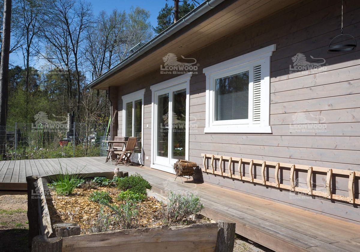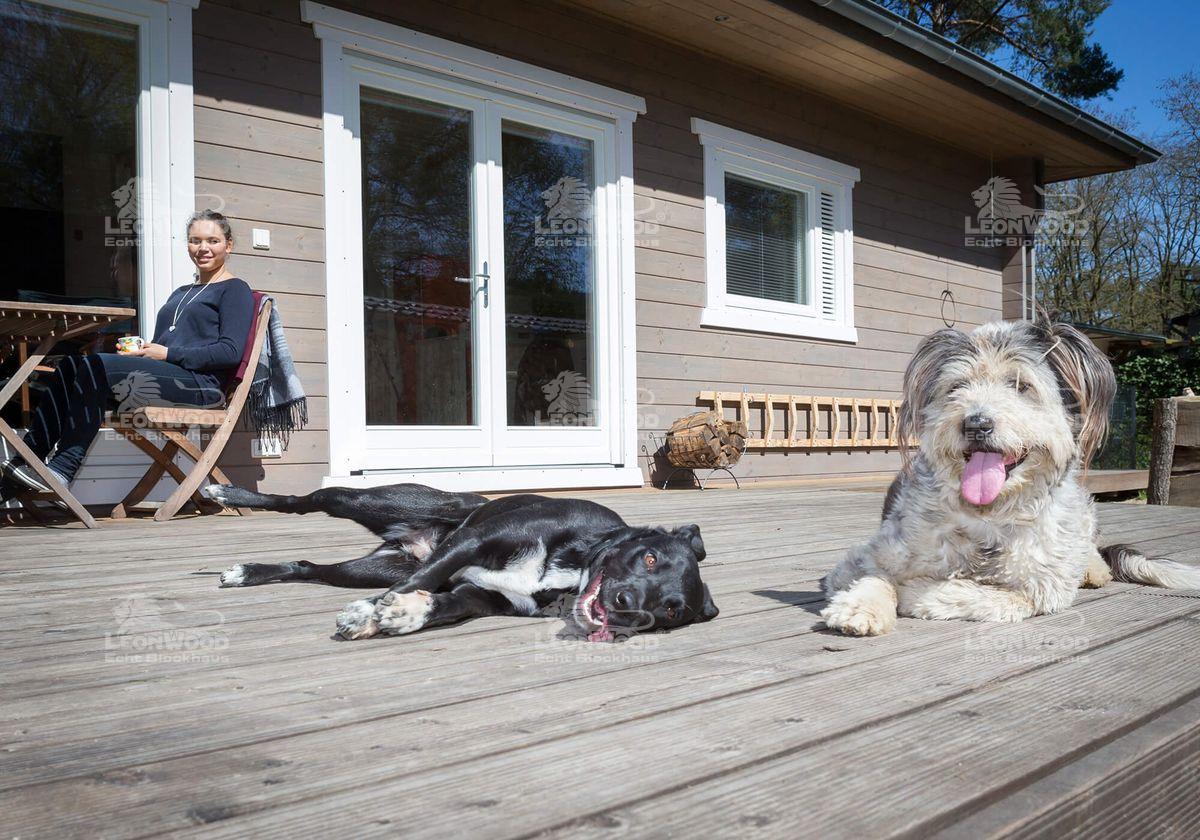 Seit 2013 ist Thomas Linke auch LéonWood®-Bauherr. Seinem Blockhaus „Victoria“ sind die maritimen, seemännischen Einflüsse deutlich anzumerken. Individualität war ihm beim Hausbau besonders wichtig. Beim Anblick seines ebenerdigen Holzhauses springen auch gleich zwei Dinge ins Auge: das Bullauge, das in die Hauseingangstür eingearbeitet wurde und der Steg, der das gesamte Blockhaus umläuft und auf der Hausrückseite in eine 24m² große Terrasse mündet. Hier verbringt er gern Zeit mit seiner Frau und seiner Tochter. Hier genießt er die Ruhe, die ihm durch seinen Beruf manchmal abhandenkommt.
