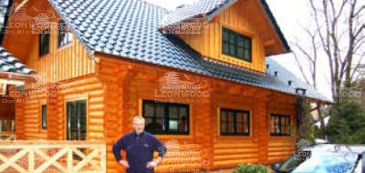 Die nigel-nagel-neue 132 Quadratmeter Wohnfläche beinhaltende Rundstamm-Blockhaus von LéonWood, das auf der Basis des Haustyps „Scout“ geplant wurde, bewohnt der Solomann gemeinsam mit seinem ständigen Beifahrer „Werner“, der bekannten Trickfilmfigur in Plüschausführung, und einer kopfwackelnden, singenden Hirschkopftrophäe. „Holzhäuser haben mir schon immer gut gefallen“, erzählt Dr. „Mü“. „Schon als kleiner Junge hatte ich mir gedacht, wenn ich mal ein Haus bauen sollte, dann eines, wie mein Lieblingshaus auf der Eisenbahnplatte.“ In Michendorf ist es dann auch gebaut worden, weil der Bauherr hier schon längere Zeit ein Grundstück mit altem DDR-Bungalow darauf besaß und als gebürtiger Berliner, wie selbst sagt, „Affinität zum nahen Berlin“ hat.