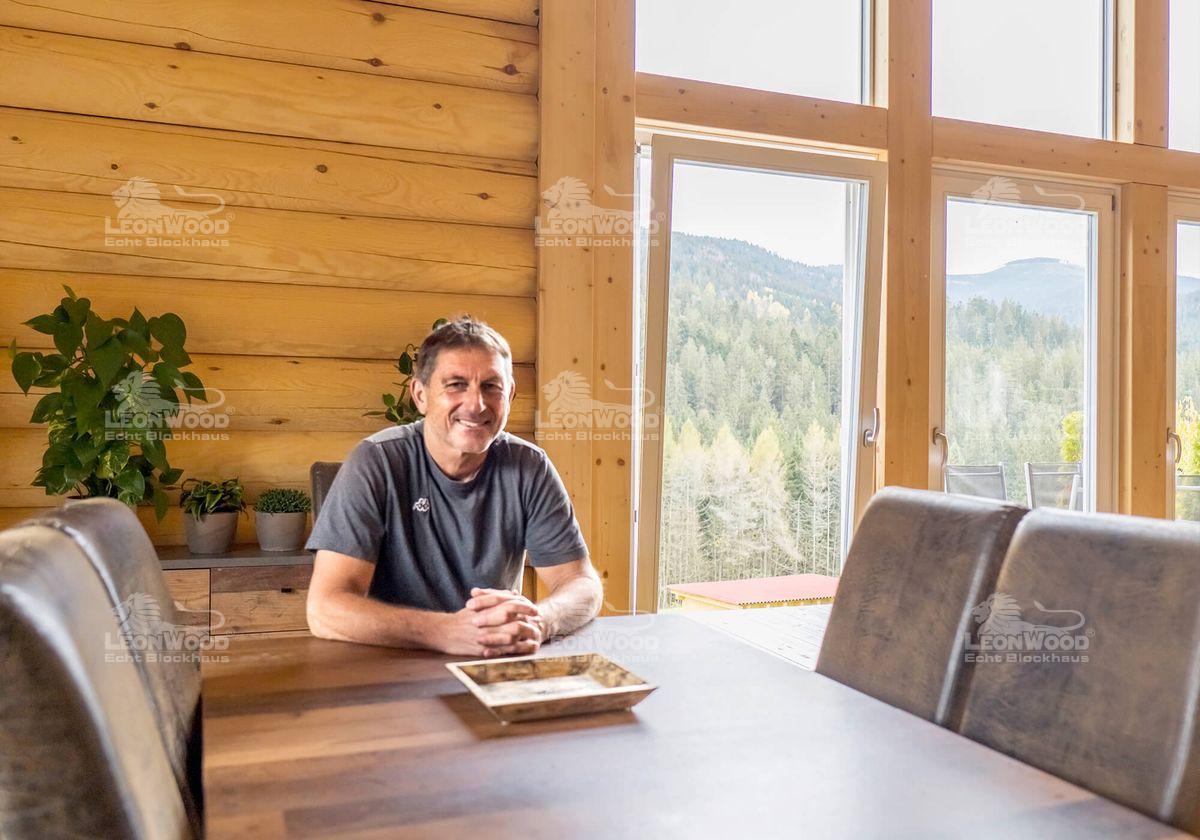 Die Entscheidung für den Baustoff Holz ist oft von persönlichen Erfahrungen und Vorlieben geprägt. Für unseren Bauherren Christian Hamberger war es eine längere Reise, denn wie das Leben so spielt: der erste Lebensweg führte am Blockhaus vorbei. Dies soll eine Geschichte sein, die beweist, dass Träume nicht Träume bleiben müssen und dass Rückschläge auch eine positive Wendung nehmen können. Und besonders schön ist es, wenn Bauherren ihre Geschichten mit uns teilen. Als selbstständiger Physiotherapeut mit drei Praxen ist Christian Hamberger ein vielbeschäftigter Mann. Wir freuen uns, dass er sich die Zeit für uns genommen hat und unseren Fragen Rede und Antwort steht – in seiner Mittagspause.