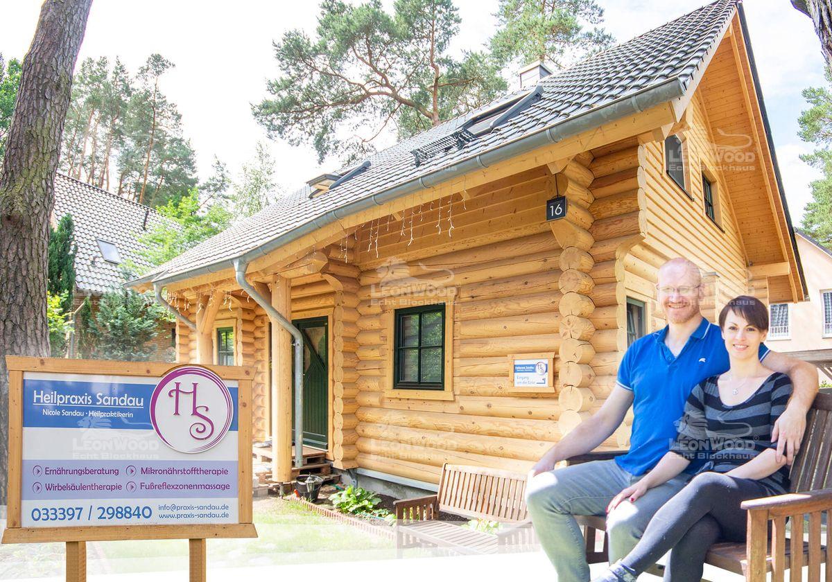 Nicole Sandau ist ausgebildete Heilpraktikerin. Ihre Praxis befindet sich nun ebenfalls im Haus. Während der Planungs- und Bauphase hat sie sich Ende 2020 selbstständig gemacht, ihre Praxis aufgebaut, Weiterbildungen besucht und sich einen Namen gemacht. Mit Fertigstellung des Hauses, war auch die Praxis betriebsbereit. Sie beschäftigt sich vorrangig mit Schmerztherapie. Aber auch die Ernährung mit Mikronährstoff-Status oder Fußreflexzonenmassagen gehören zu Nicole Sandaus Leistungen. Über letzteres ist sie zur Heilpraktiker-Ausbildung gekommen. „Mich hat es fasziniert, Menschen, die wirklich Probleme hatten, den Schmerz zu nehmen“, erinnert sich die Wandlitzerin. Ihr Mann Mirko hat sie bei der Ausbildung und Selbstständigkeit bestärkt. Das Holzhaus-Ambiente kommt bei ihren Patienten sehr gut an, wie sie sagt: „Schon alleine diese beruhigende Atmosphäre wirkt sehr entspannend auf die Menschen. Die riechen das Holz und sind gleich so viel positiver. Durch das Holz habe ich den Eindruck, dass meine Patienten das hier als geschützten Raum betrachten, einfach weil so eine gemütliche Atmosphäre besteht.“