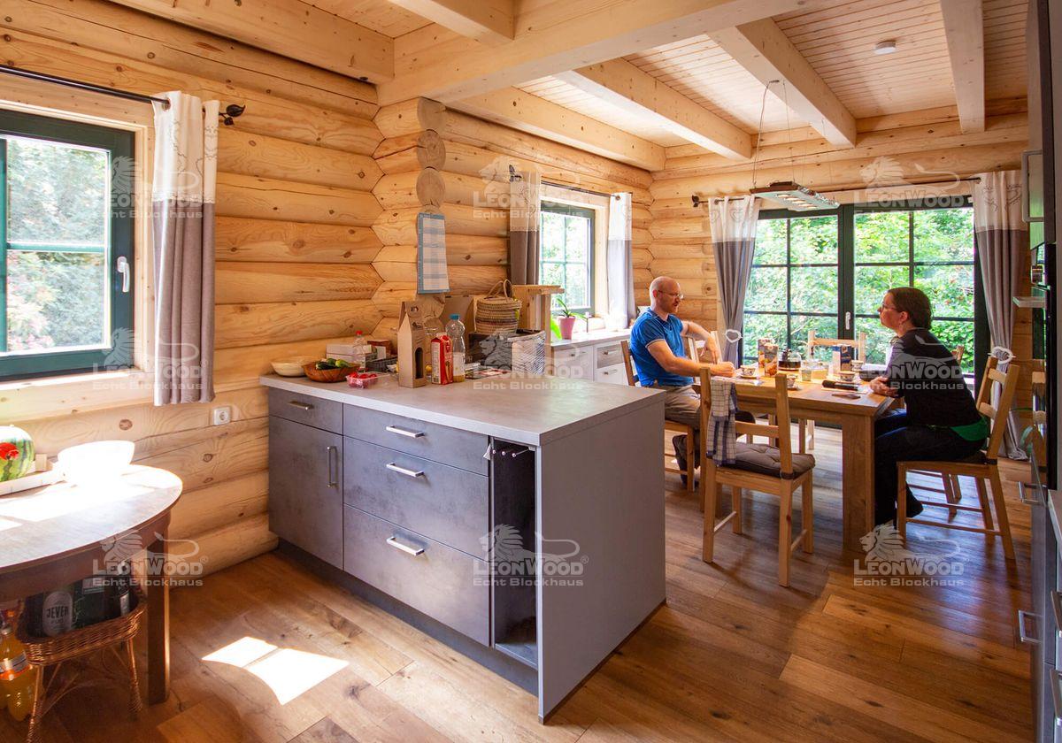 Nicole erzählt uns, dass es nicht mal eine Nacht brauchte, um sich im neuen Blockhaus heimisch zu fühlen: „Also wir waren auch vorher schon hier zu Hause, weil ja das Grundstück mit Bungalow schon unser Zuhause war. Aber wir haben hier die erste Nacht im neuen Haus geschlafen und waren einfach zu Hause!“ Und apropos Zuhause: Eine lustige Anekdote hat sie noch für uns parat: „Als das Blockhaus stand, kam eine Nachbarin zu Besuch und wollte mich in der Nachbarschaft willkommen heißen. Ich sagte zu ihr: ‚Das ist lieb gemeint, aber ich wohne schon immer hier‘“, lacht sie.