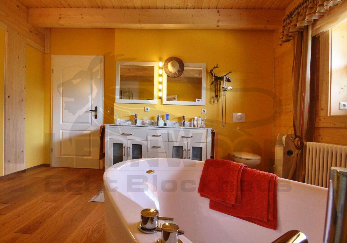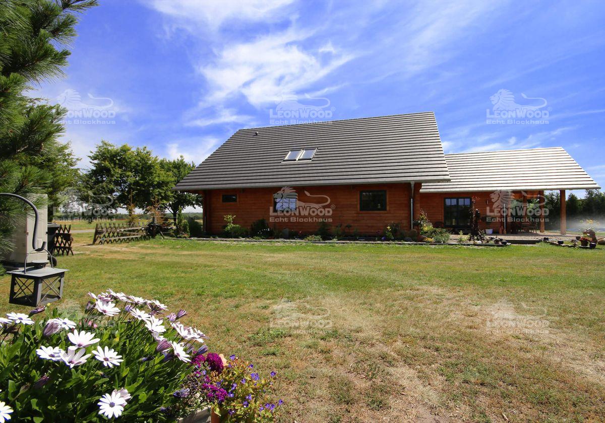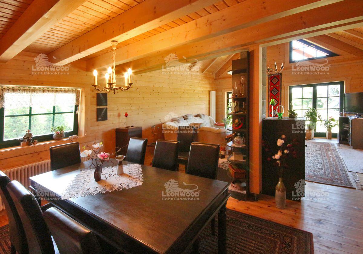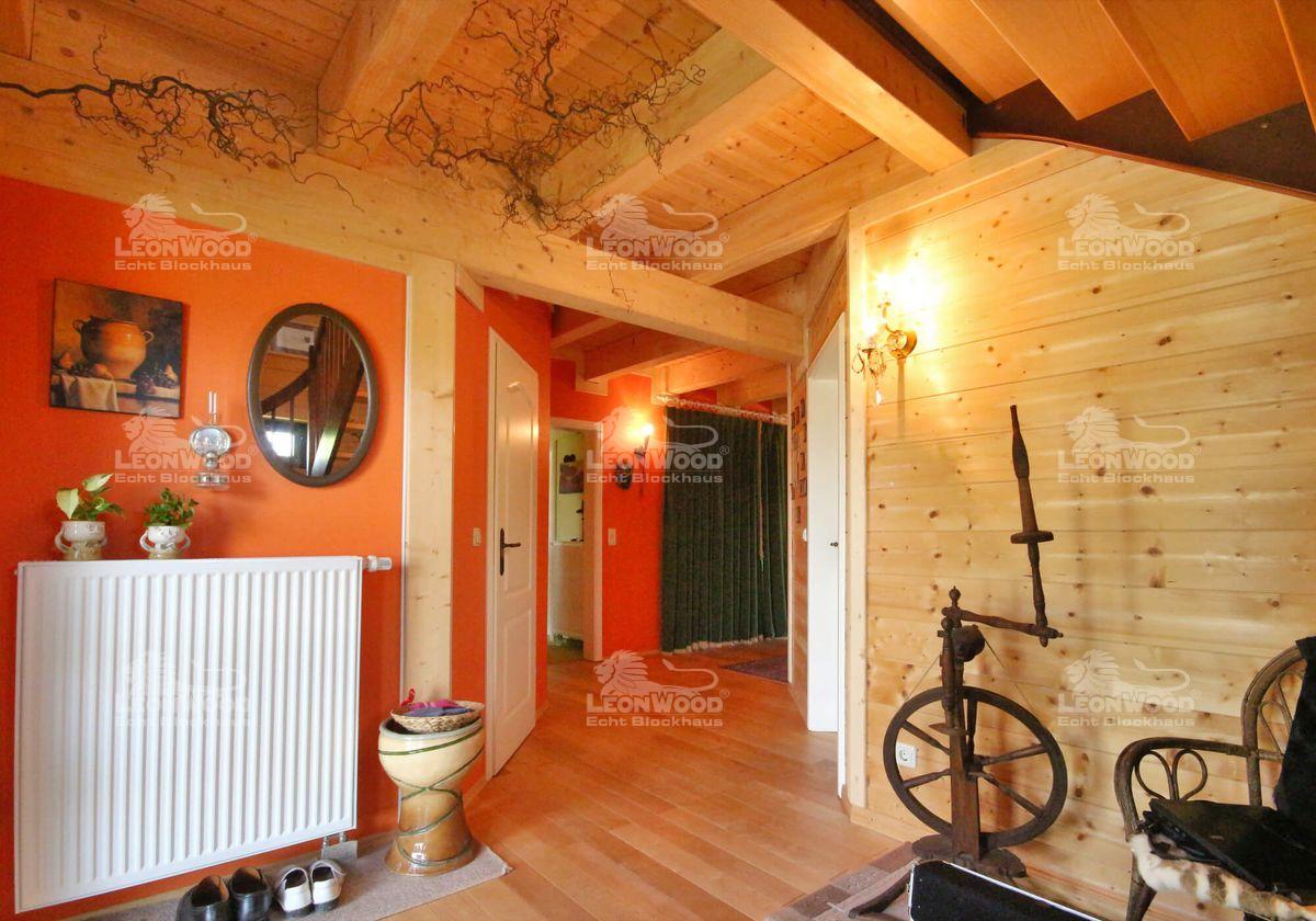 „Ein Blockhaus mit LéonWood® bauen, das war wirklich eine interessante Sache.“ Eine interessante Sache ist auch mein Besuch bei Familie Krömer in Teichland. Im großzügigen Wohnbereich des selbst getauften „Teich-Landidyll“ lasse ich die warme Atmosphäre des Holzes und die liebevolle detailreiche Gestaltung auf mich wirken und lausche der Geschichte von Frau und Herrn Krömer: Im März 2011 baute das Paar gemeinsam mit den erwachsenen Söhnen und deren Familien das eigene Blockhaus mit LéonWood®. „Es war eine wundervolle Erfahrung. Die Familie hatte ein tolles gemeinsames Erlebnis. Das vergisst man nicht so schnell. Wir sind an den Aufgaben, die das Haus an uns stellte – und noch immer stellt – gewachsen“, erzählte mir Frau Krömer mit einem glücklichen Lächeln.
