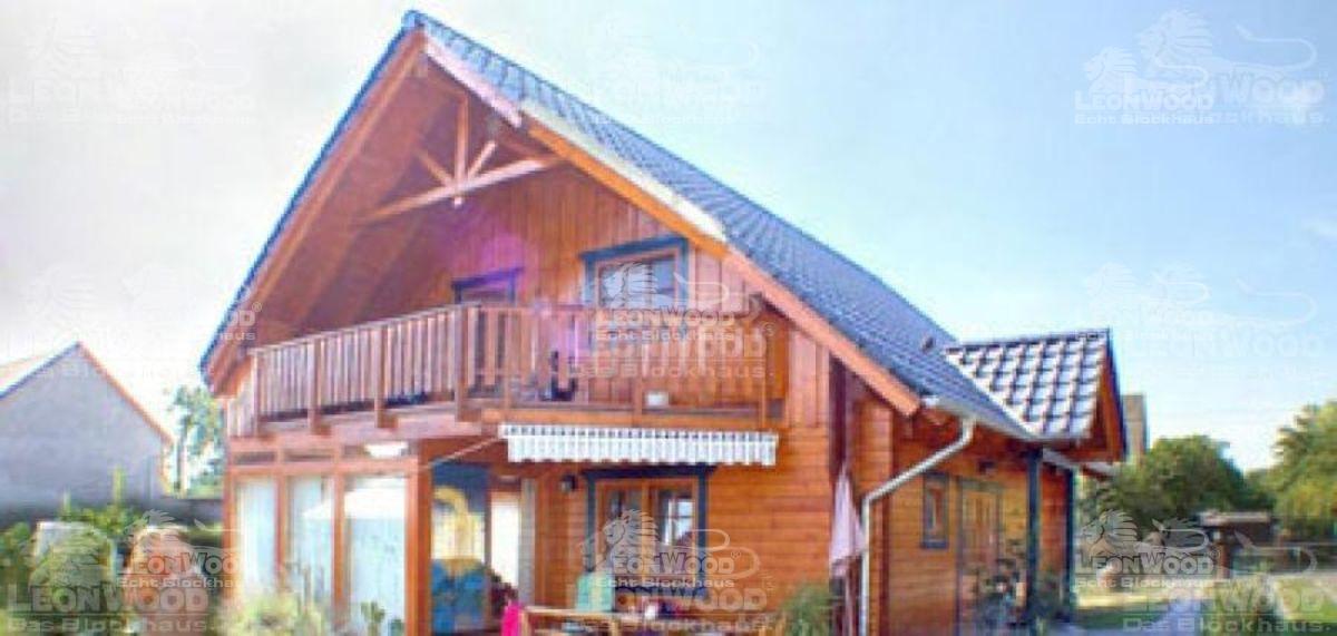 Krankenpfleger Nico Eichel erzählt, wie er zum Léonwood® Holzblockhaus „Alicante“ gekommen ist: „Wir haben das Holzhaus im Internet gesehen, dann bei Herrn Jost eins angeschaut und das hat mich dann nicht mehr losgelassen.“ Die Hausfrau ergänzt: „Schauen Sie sich Innen die schönen Wände an, deswegen hat sich Nico dafür entschieden.“