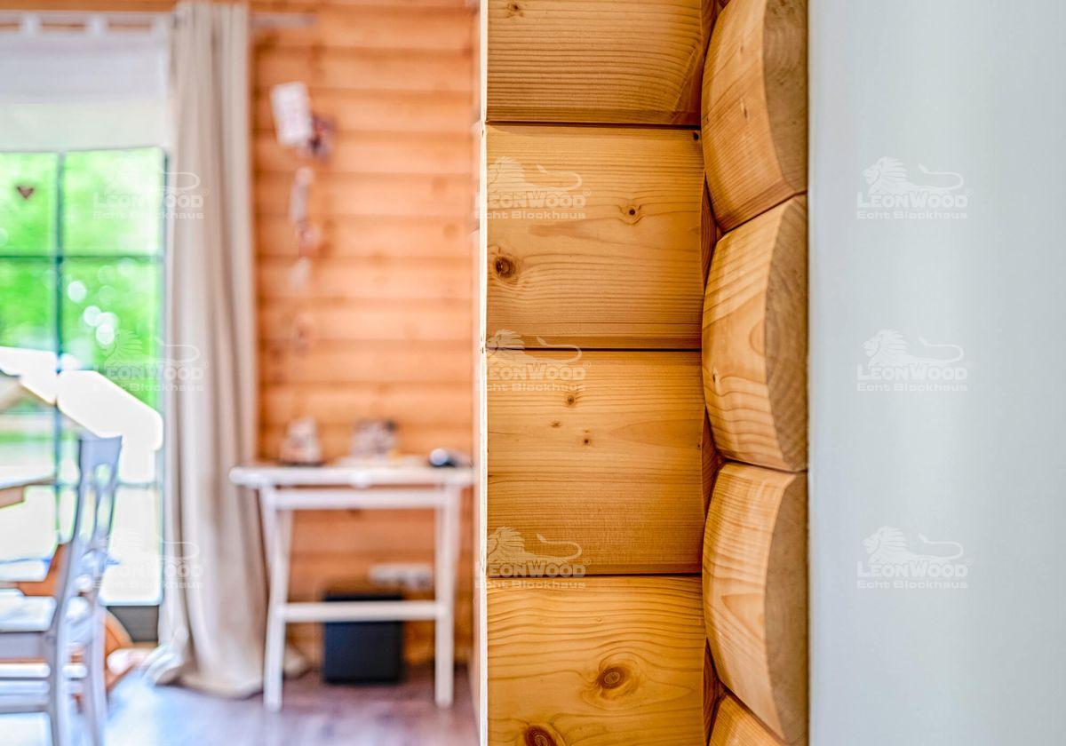LéonWood® gelingt es, das Ehepaar durch sein Portfolio und die vielfältigen Wandvarianten für sich zu gewinnen: „Von der Optik her mögen wir eigentlich am liebsten die Naturstamm-Variante. Bei LéonWood® hatten wir dank des Doppel-D-Profils (innen und außen) die Möglichkeit, die Vorteile der Naturstamm-Optik sowie der Blockbohlen-Bauweise in der BIO-Doppelwand® zu vereinen.“