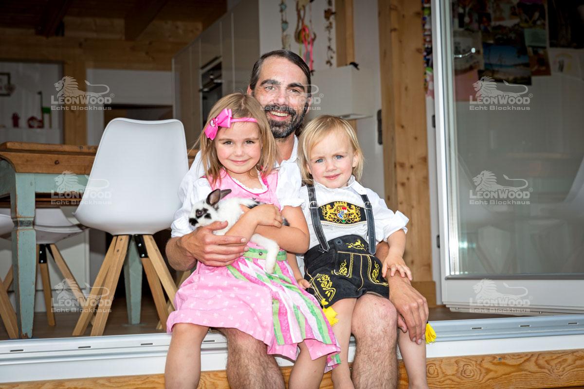 Das Leben in einem Holzhaus ist wohngesund. Das Holz ist diffusionsoffen, sprich durchlässt Wasserdampf und bietet einen stetigen Luftaustausch. Familie Schweiberer wird deshalb zukünftig keine Probleme mehr mit feuchten Wänden und Schimmel haben. Das gesunde Klima kann der nun stolze Holzhausbesitzer für sich selbst bereits nach ein paar Jahren Holzhausleben bestätigen: „Also, was mir auffällt ist, dass ich nicht mehr krank bin.“ Die gesundheitliche Wirkung von Holz wurde übrigens bereits in Untersuchungen bewiesen. Die Biologische Bundesanstalt für Land- und Forstwirtschaft in Braunschweig bestätigte beispielsweise, dass Hölzer wie Kiefer und Fichte antibakteriell wirken, sowohl an der Oberfläche als auch im Innern. LéonWood® wünscht deshalb Familie Schweiberer ein weiterhin gesundes Leben in ihrem modernen „Flatwood Green 90“ mit mega Veranda. Wie Franz Schweiberer, der nun als Fahrlehrer tätig ist, abschließend witzelnd anmerkt: „Der Fahrlehrer braucht auch ein ruhiges Zuhause, eine Wohlfühloase.“ Die hat er sich durchaus geschaffen!
