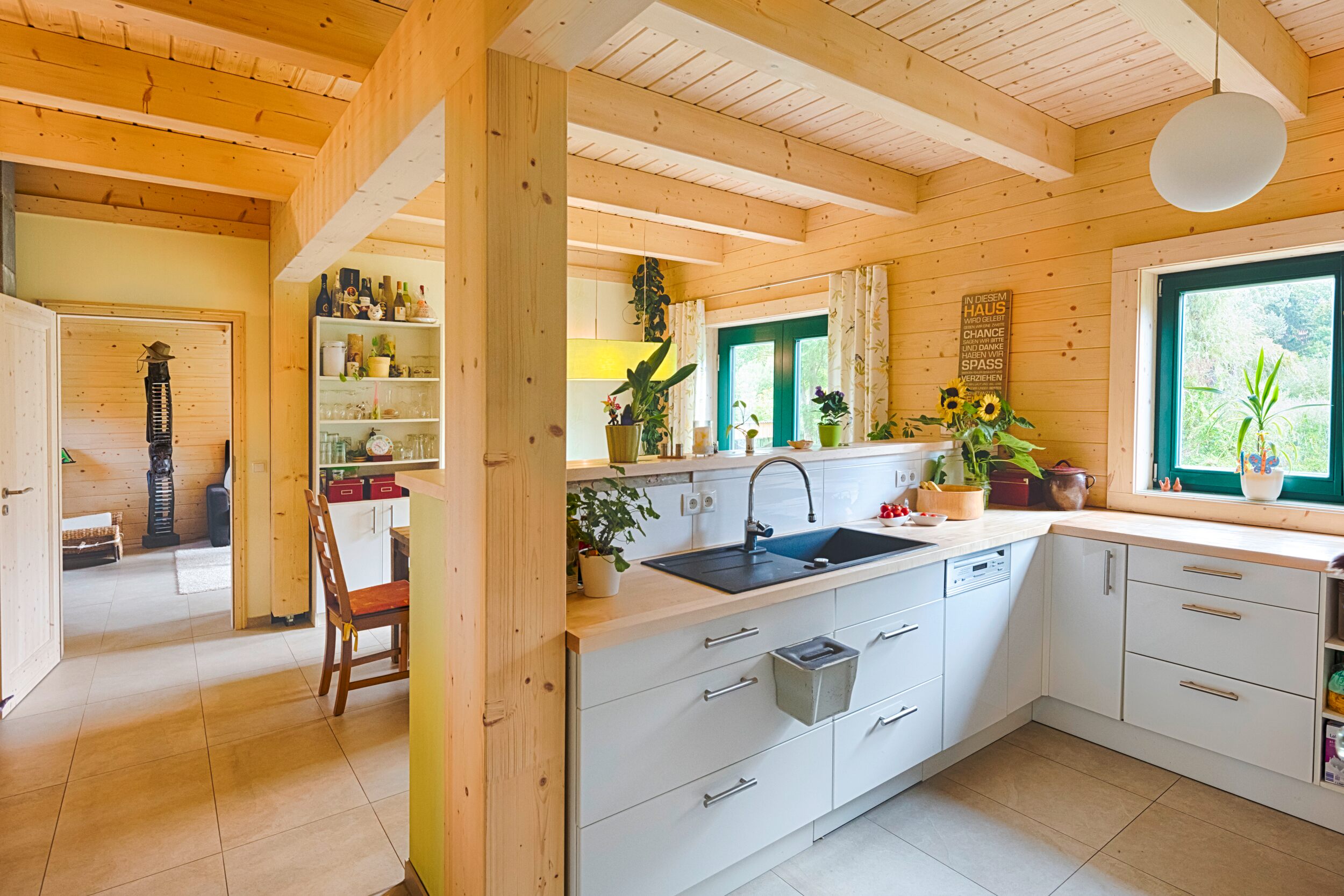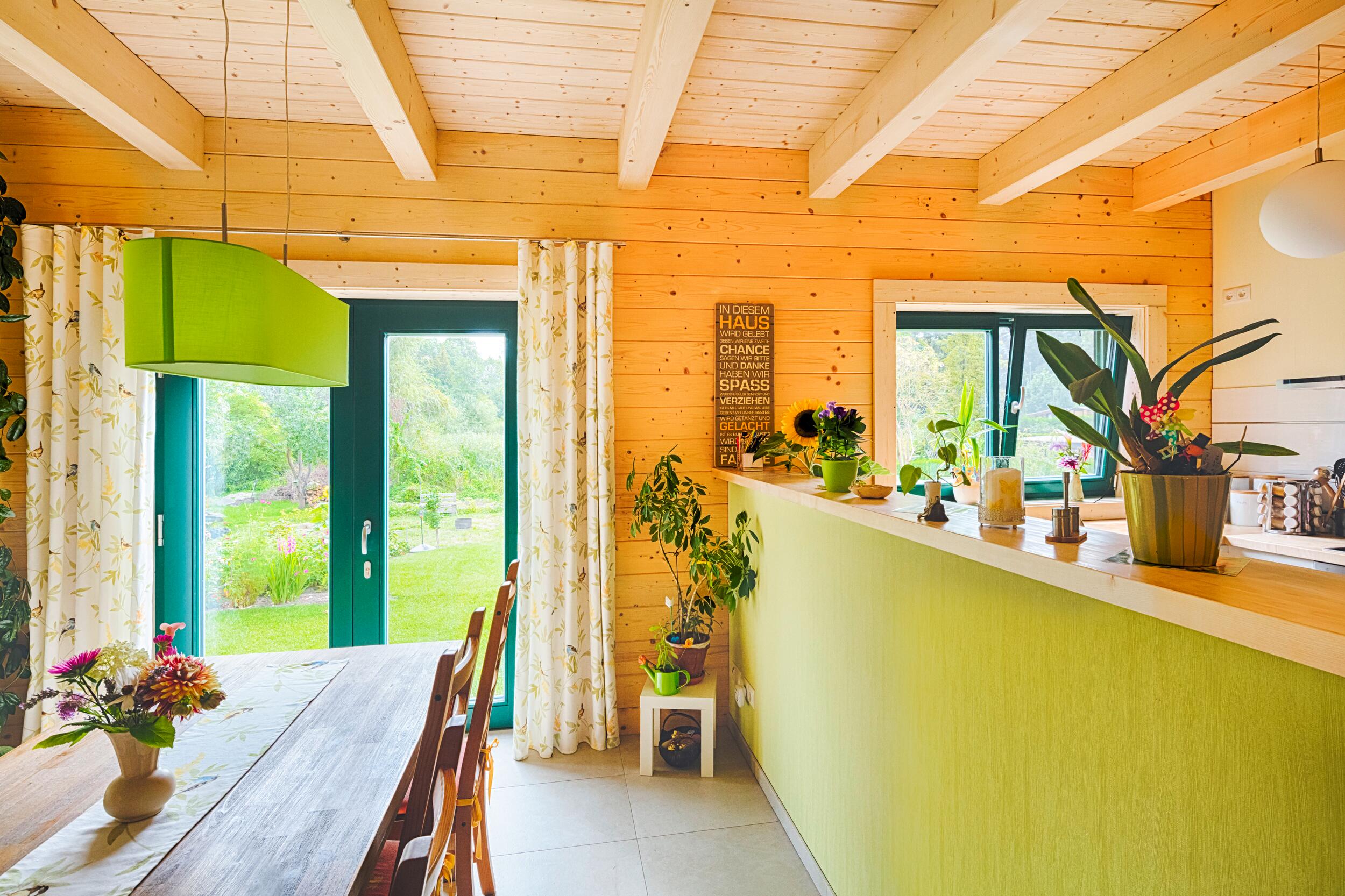 Wie fühlt es sich an, in einem Blockhaus aus massivem Holz zu wohnen? Unsere Innenraumgalerie zeigt Wohnräume, in denen sichtbare Holzbalken, warme Oberflächen und großzügige Fensterflächen eine besondere Atmosphäre schaffen. Hier wird deutlich, wie Licht auf Holz trifft, wie Räume wirken und wie natürliches Wohnen im Massivholzhaus aussieht. Lassen Sie sich inspirieren von Eindrücken, die Geborgenheit, Ruhe und zeitlose Beständigkeit vermitteln.