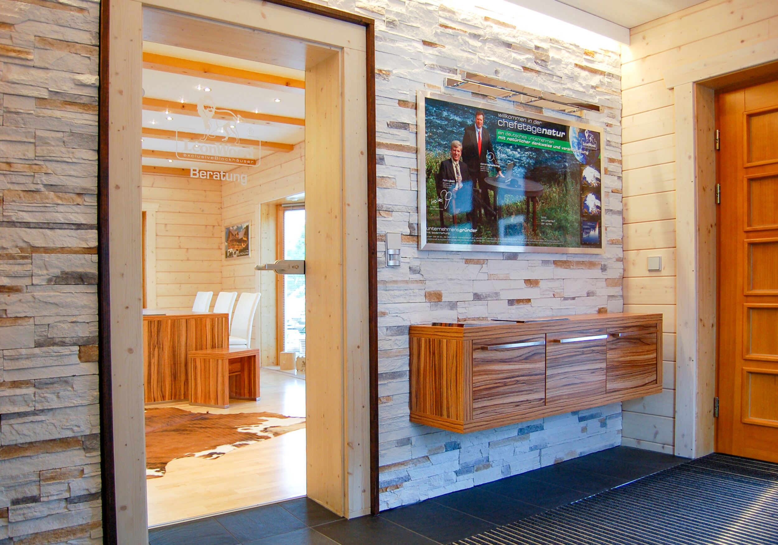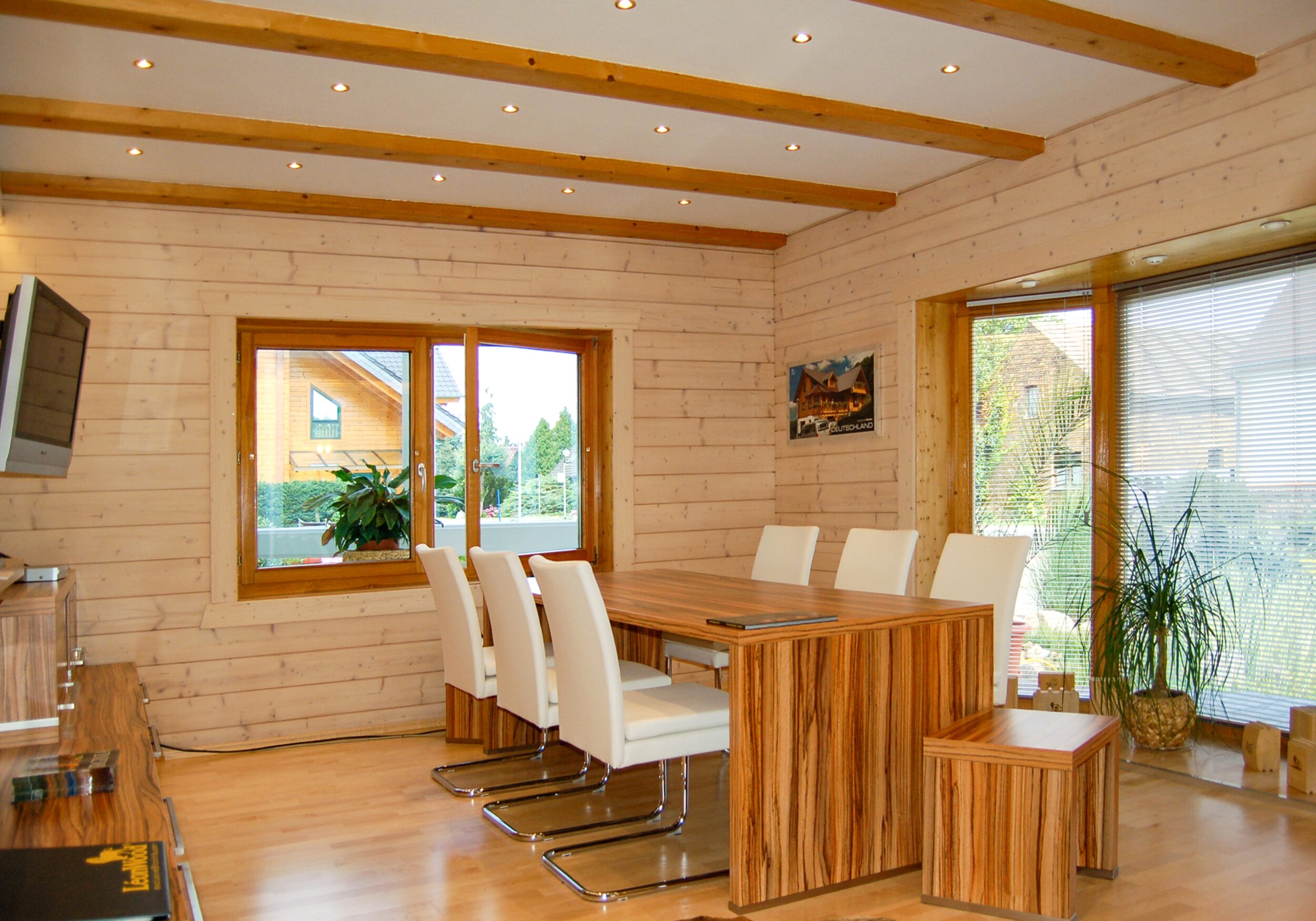Wie fühlt es sich an, in einem Blockhaus aus massivem Holz zu wohnen? Unsere Innenraumgalerie zeigt Wohnräume, in denen sichtbare Holzbalken, warme Oberflächen und großzügige Fensterflächen eine besondere Atmosphäre schaffen. Hier wird deutlich, wie Licht auf Holz trifft, wie Räume wirken und wie natürliches Wohnen im Massivholzhaus aussieht. Lassen Sie sich inspirieren von Eindrücken, die Geborgenheit, Ruhe und zeitlose Beständigkeit vermitteln.