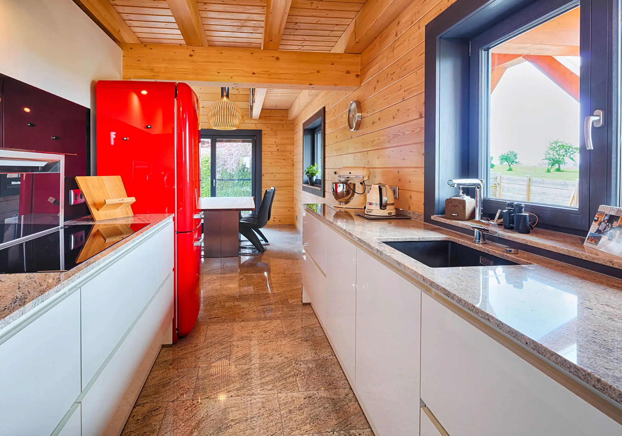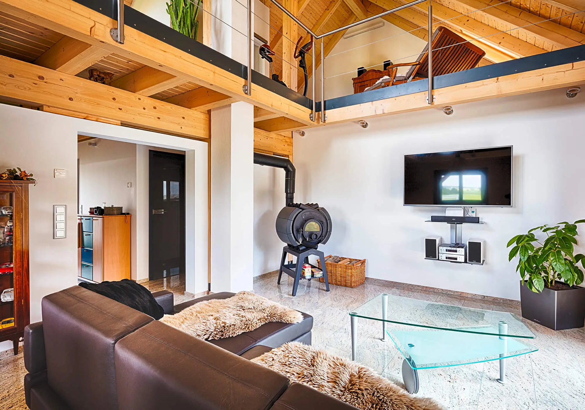 Wie fühlt es sich an, in einem Blockhaus aus massivem Holz zu wohnen? Unsere Innenraumgalerie zeigt Wohnräume, in denen sichtbare Holzbalken, warme Oberflächen und großzügige Fensterflächen eine besondere Atmosphäre schaffen. Hier wird deutlich, wie Licht auf Holz trifft, wie Räume wirken und wie natürliches Wohnen im Massivholzhaus aussieht. Lassen Sie sich inspirieren von Eindrücken, die Geborgenheit, Ruhe und zeitlose Beständigkeit vermitteln.