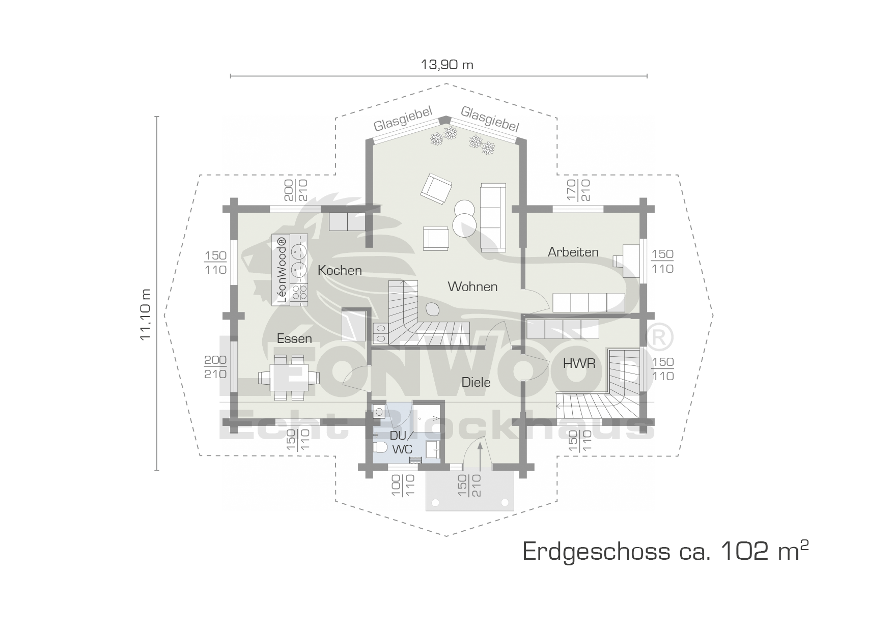 Der Preis beinhaltet den Blockhaus-Bausatz nach Standard-Grundriss, die Lieferung an eine frei erreichbare Baustelle in Deutschland sowie die aktuell geltende MwSt. für Deutschland. Bilder enthalten Sonderausstattungen.