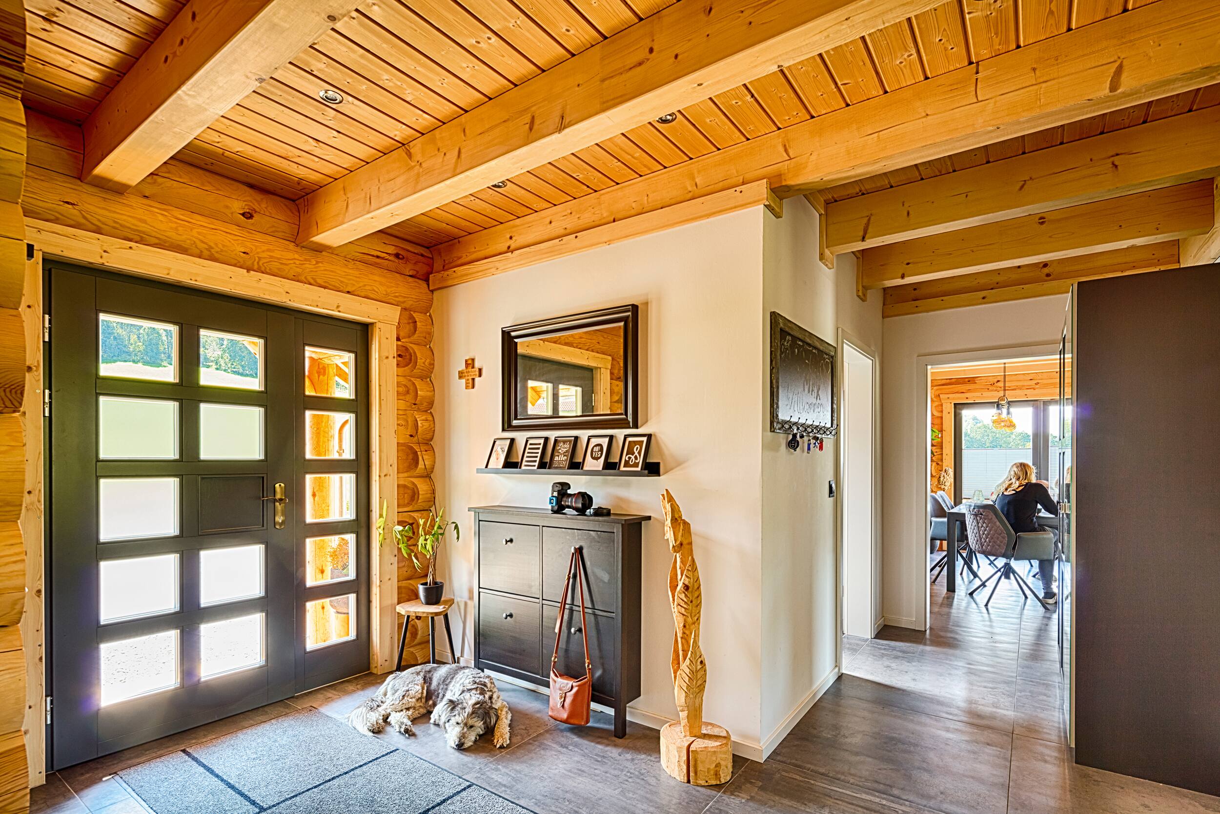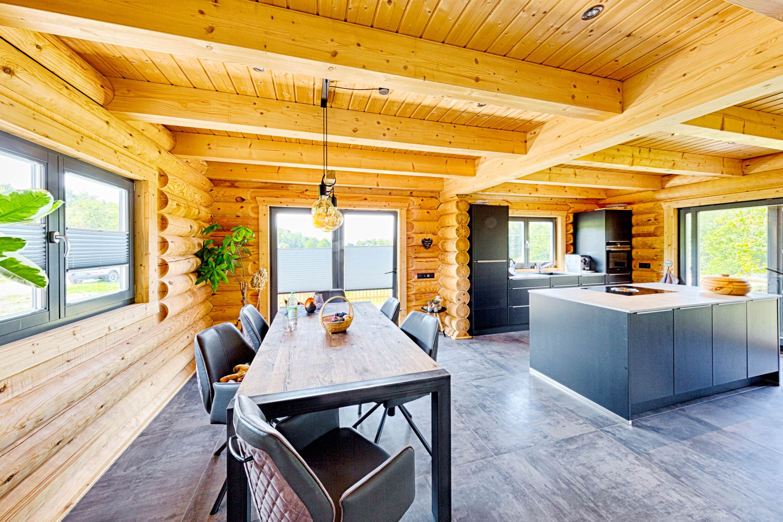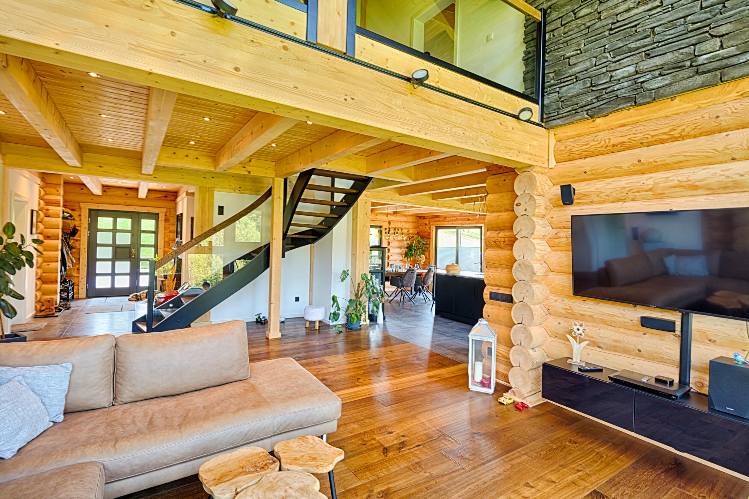 Selbsttragende Blockbohlen und traditionelle Verbindungen sorgen für Stabilität, Dauerhaftigkeit und ein Haus, das über viele Jahre hinweg Bestand hat.