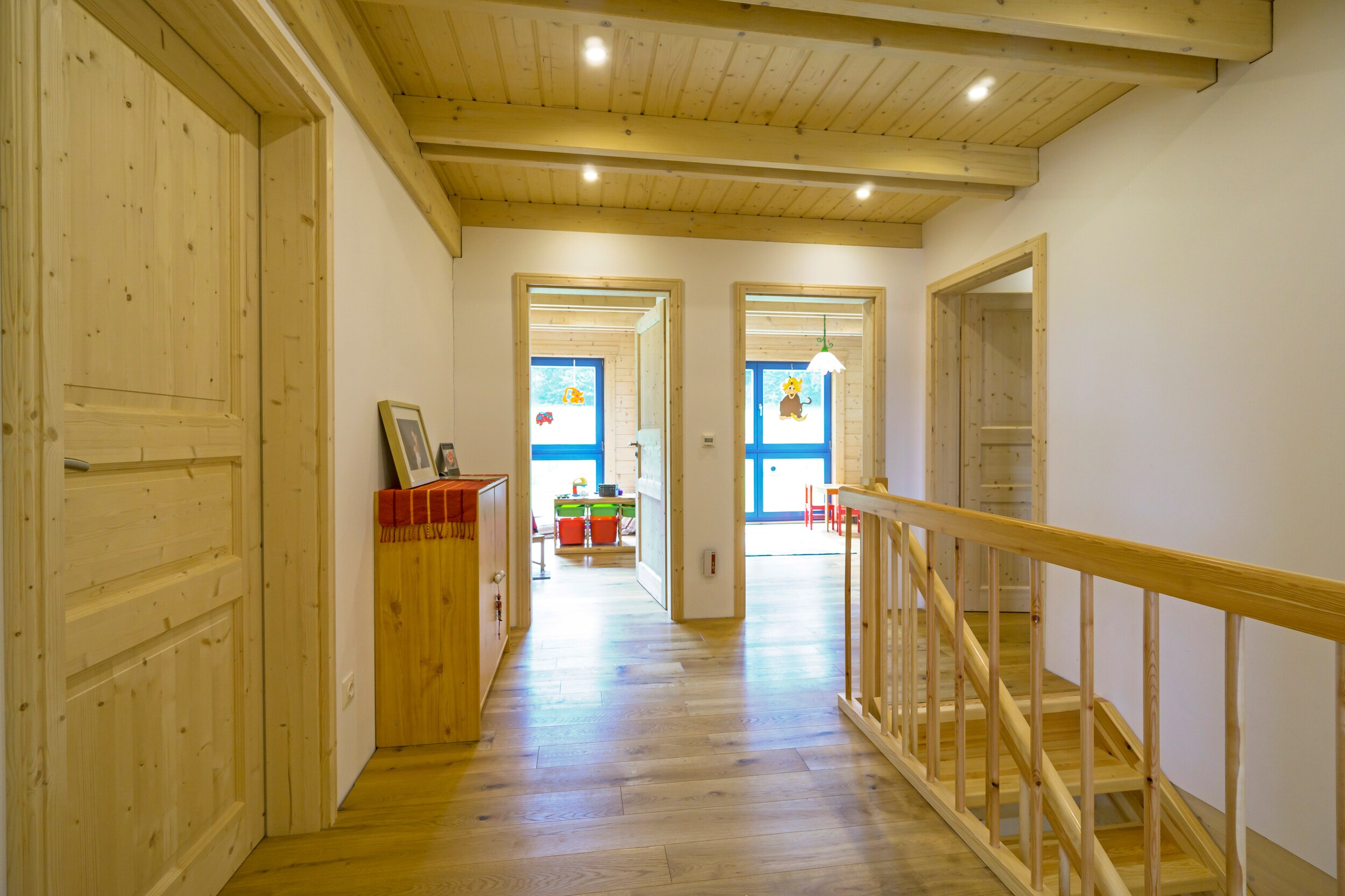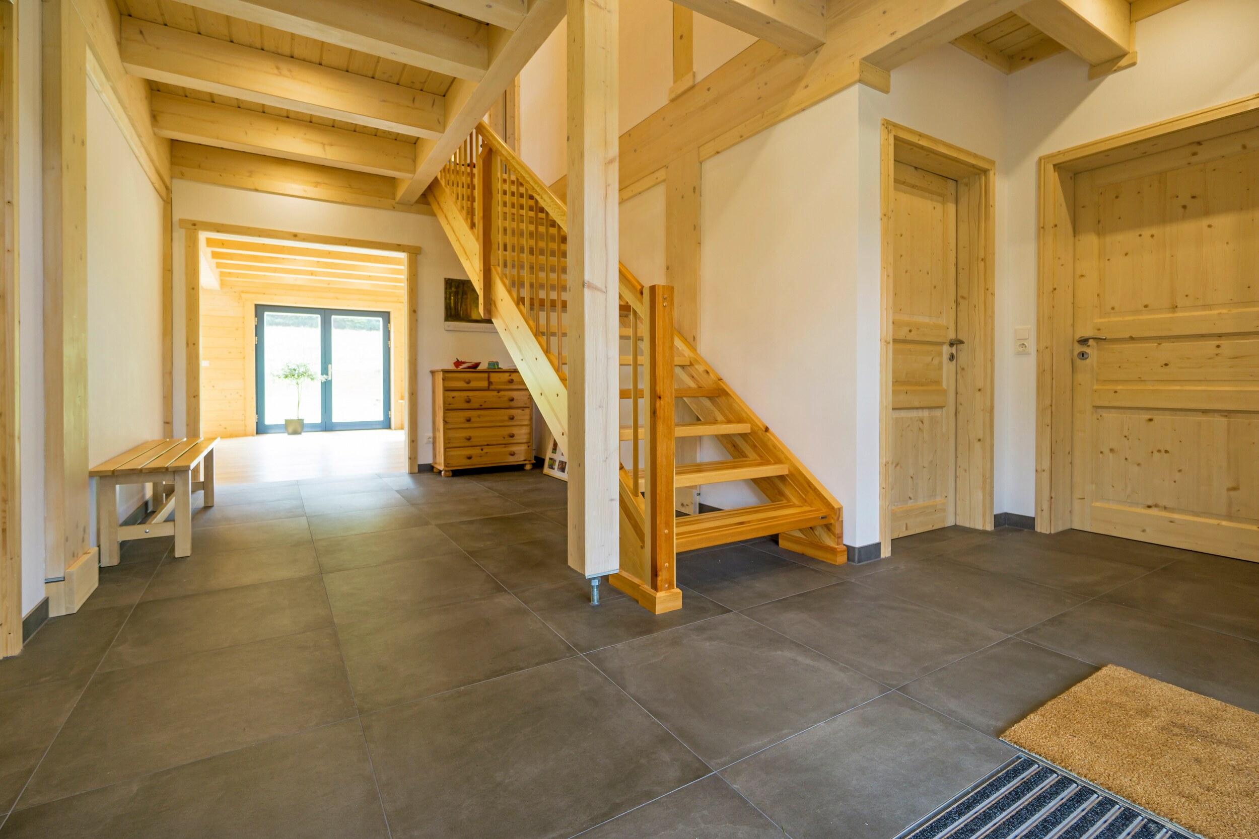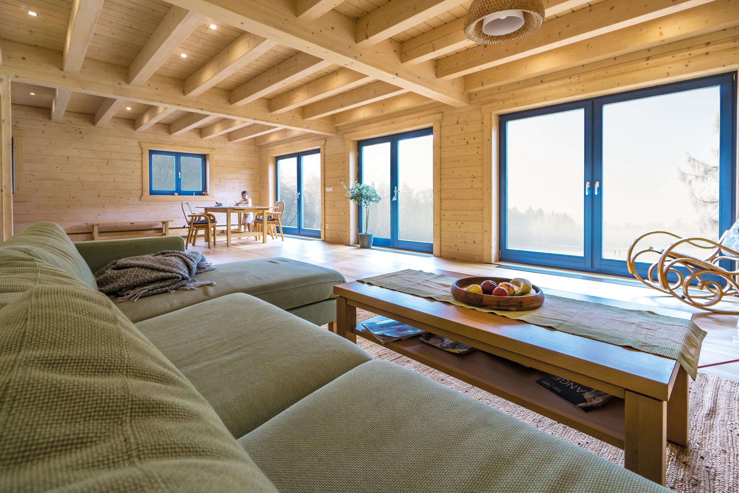 Wie fühlt es sich an, in einem Blockhaus aus massivem Holz zu wohnen? Unsere Innenraumgalerie zeigt Wohnräume, in denen sichtbare Holzbalken, warme Oberflächen und großzügige Fensterflächen eine besondere Atmosphäre schaffen. Hier wird deutlich, wie Licht auf Holz trifft, wie Räume wirken und wie natürliches Wohnen im Massivholzhaus aussieht. Lassen Sie sich inspirieren von Eindrücken, die Geborgenheit, Ruhe und zeitlose Beständigkeit vermitteln.