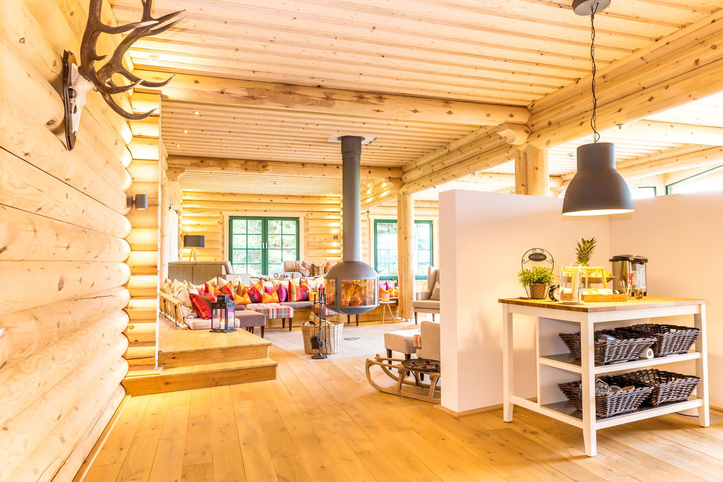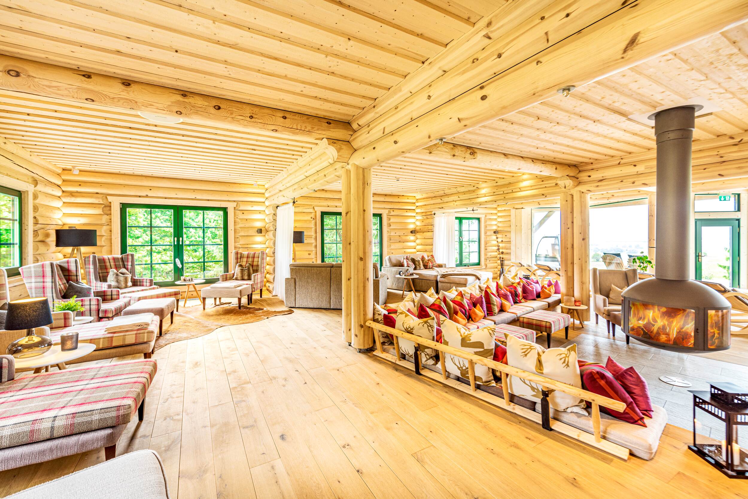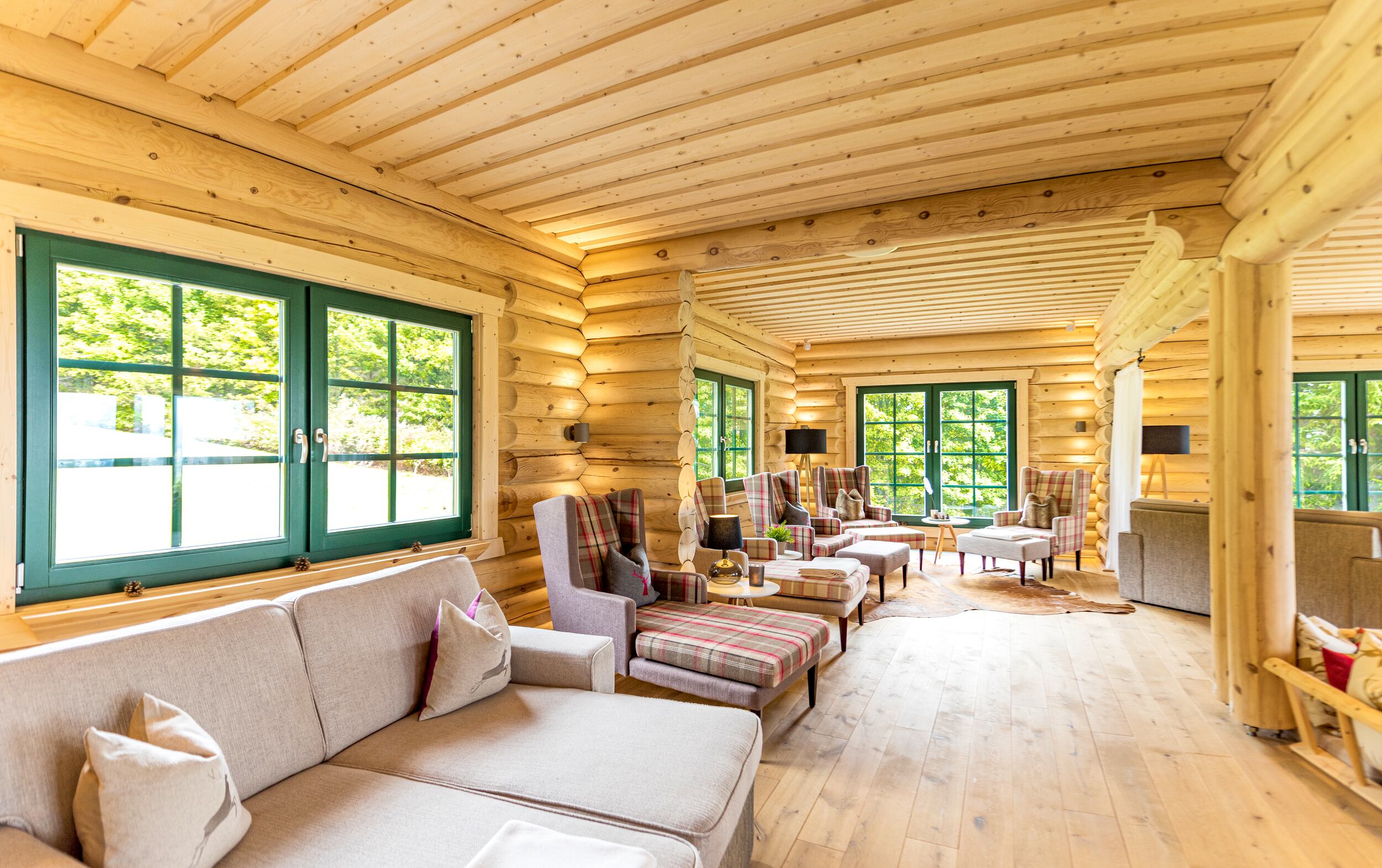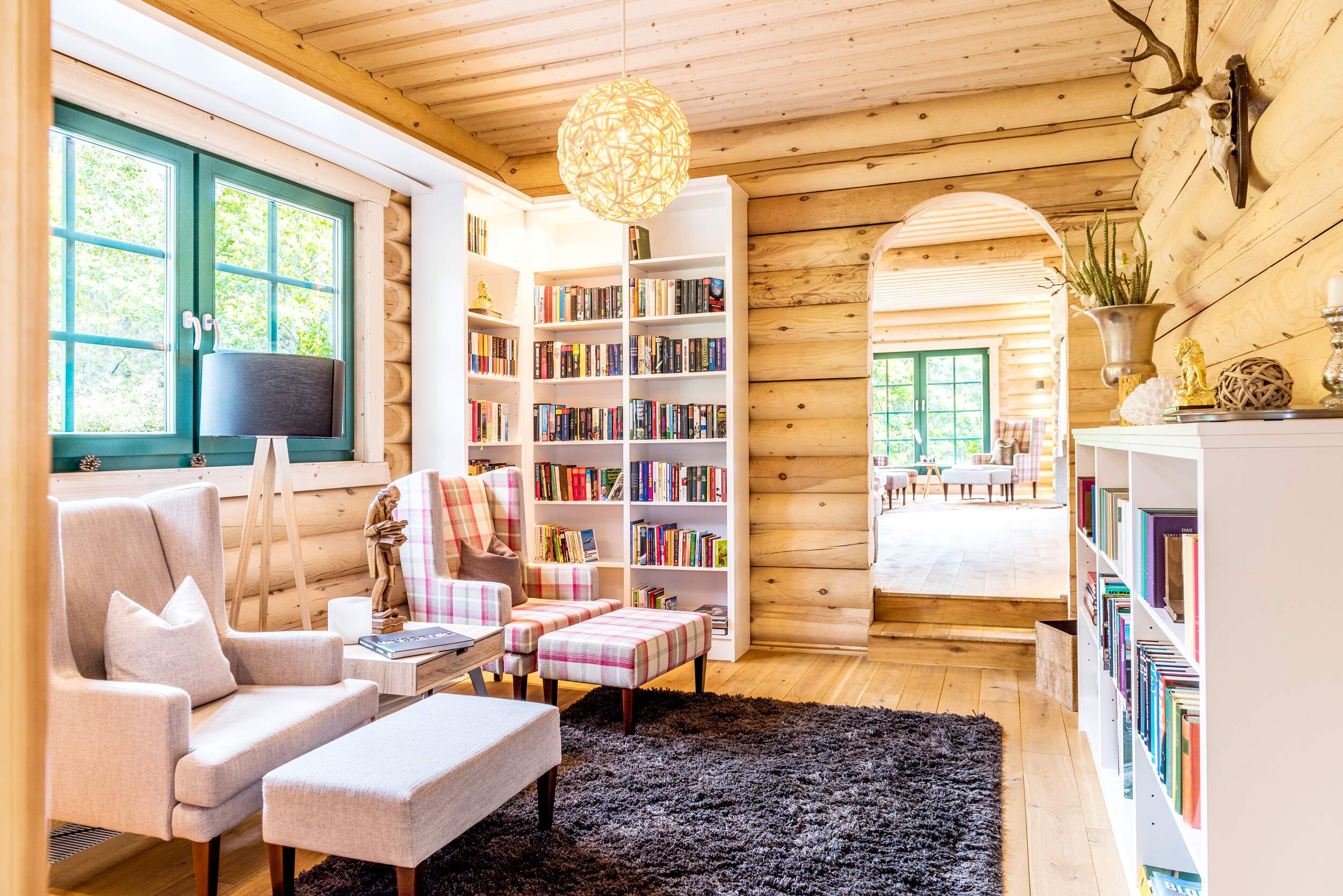 Wie fühlt es sich an, in einem Blockhaus aus massivem Holz zu wohnen? Unsere Innenraumgalerie zeigt Wohnräume, in denen sichtbare Holzbalken, warme Oberflächen und großzügige Fensterflächen eine besondere Atmosphäre schaffen. Hier wird deutlich, wie Licht auf Holz trifft, wie Räume wirken und wie natürliches Wohnen im Massivholzhaus aussieht. Lassen Sie sich inspirieren von Eindrücken, die Geborgenheit, Ruhe und zeitlose Beständigkeit vermitteln.