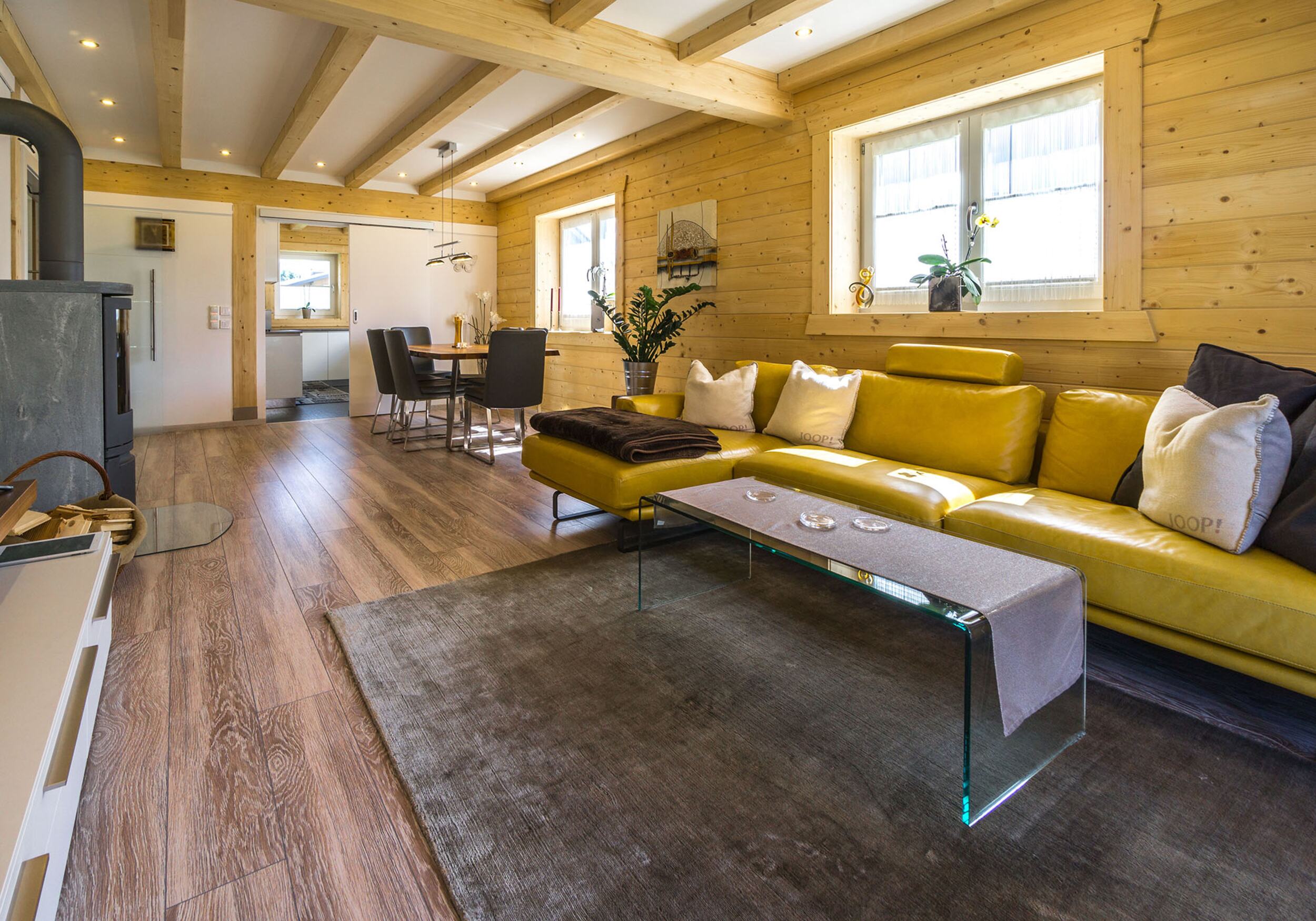 Wie fühlt es sich an, in einem Blockhaus aus massivem Holz zu wohnen? Unsere Innenraumgalerie zeigt Wohnräume, in denen sichtbare Holzbalken, warme Oberflächen und großzügige Fensterflächen eine besondere Atmosphäre schaffen. Hier wird deutlich, wie Licht auf Holz trifft, wie Räume wirken und wie natürliches Wohnen im Massivholzhaus aussieht. Lassen Sie sich inspirieren von Eindrücken, die Geborgenheit, Ruhe und zeitlose Beständigkeit vermitteln.