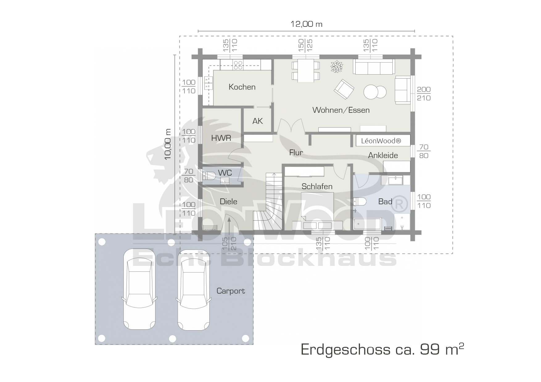 Der Preis beinhaltet den Blockhaus-Bausatz nach Standard-Grundriss, die Lieferung an eine frei erreichbare Baustelle in Deutschland sowie die aktuell geltende MwSt. für Deutschland. Bilder enthalten Sonderausstattungen.
