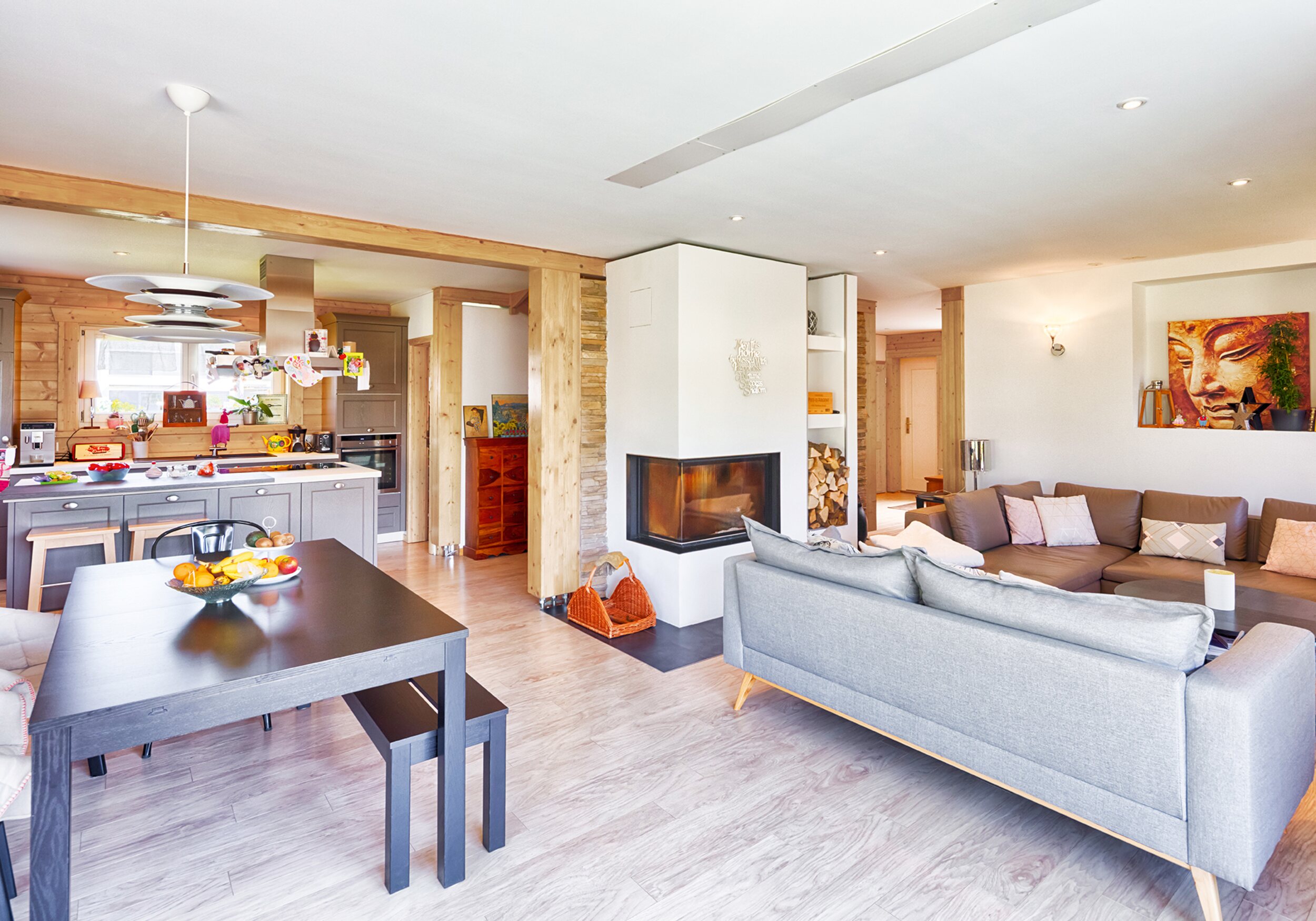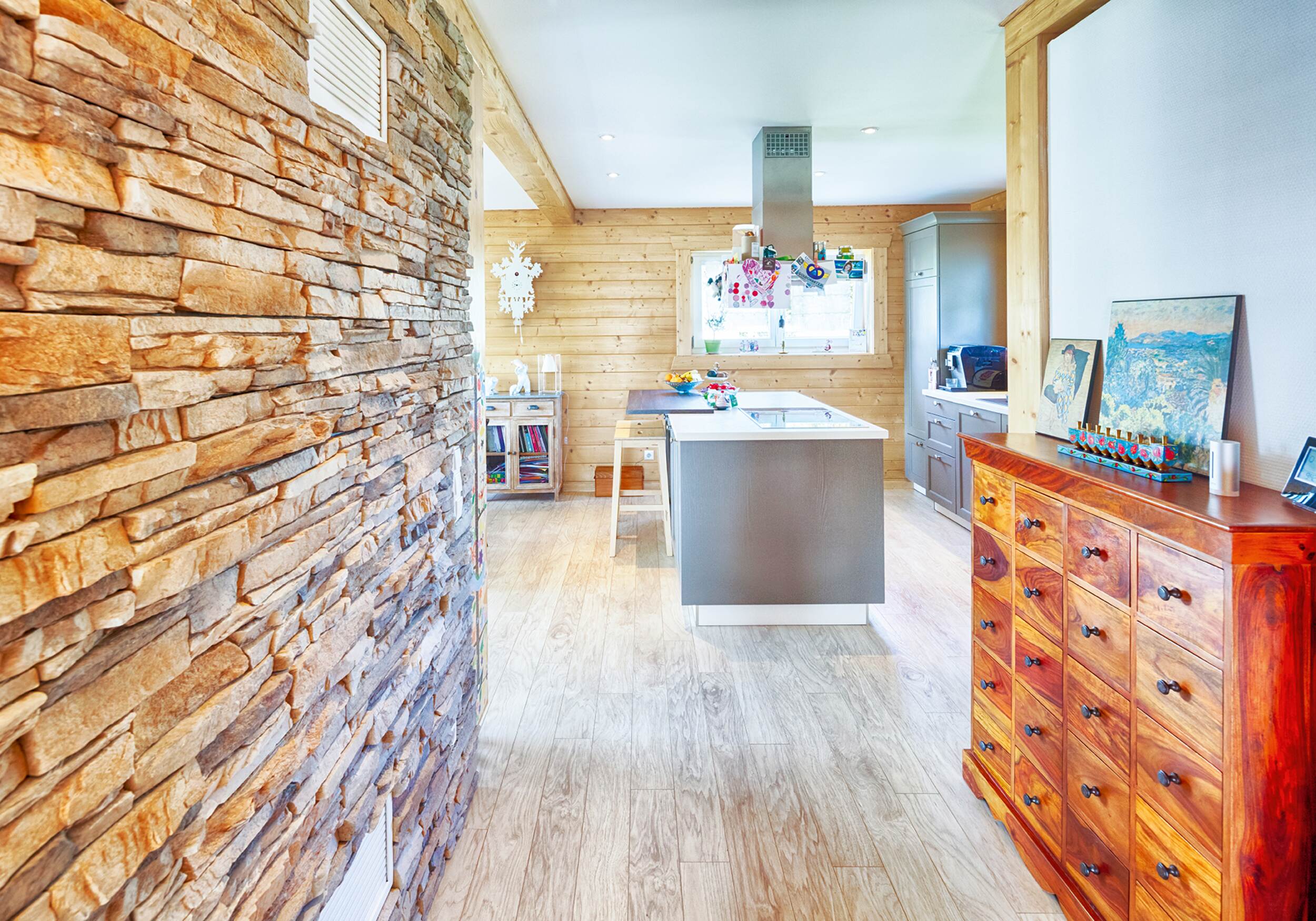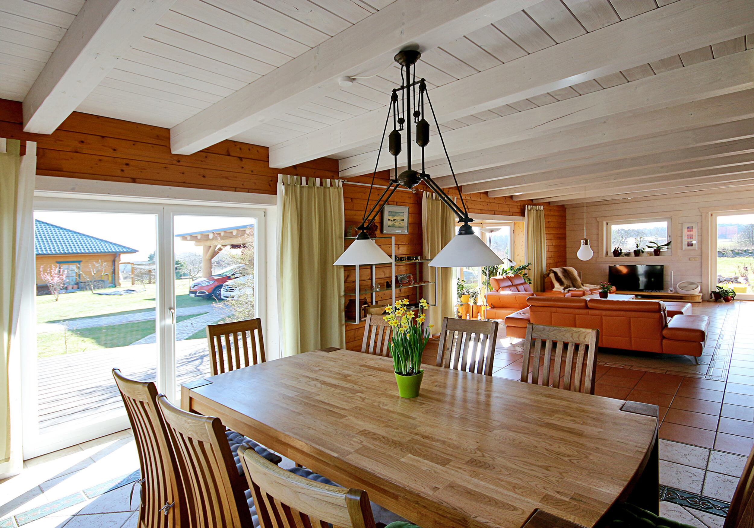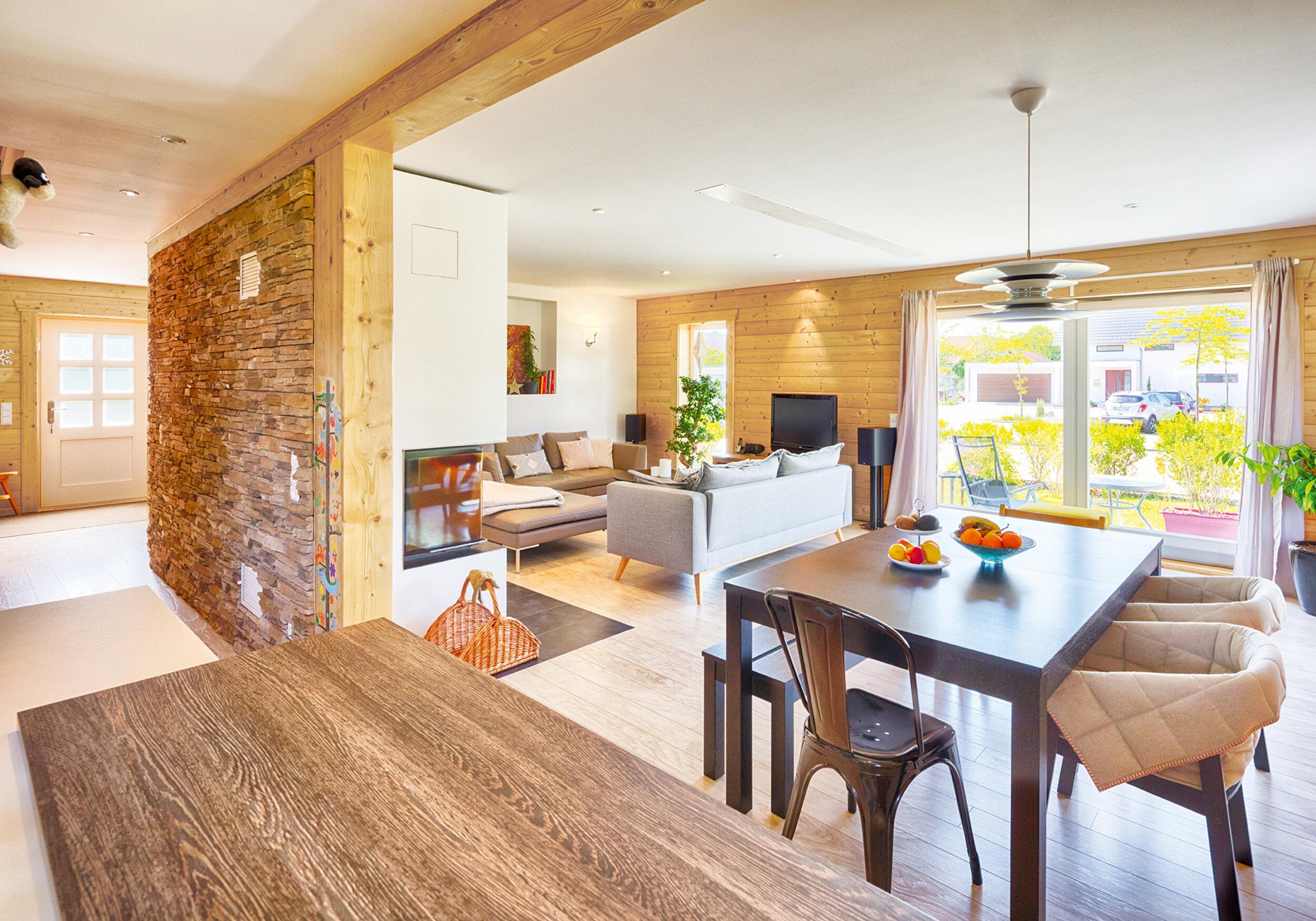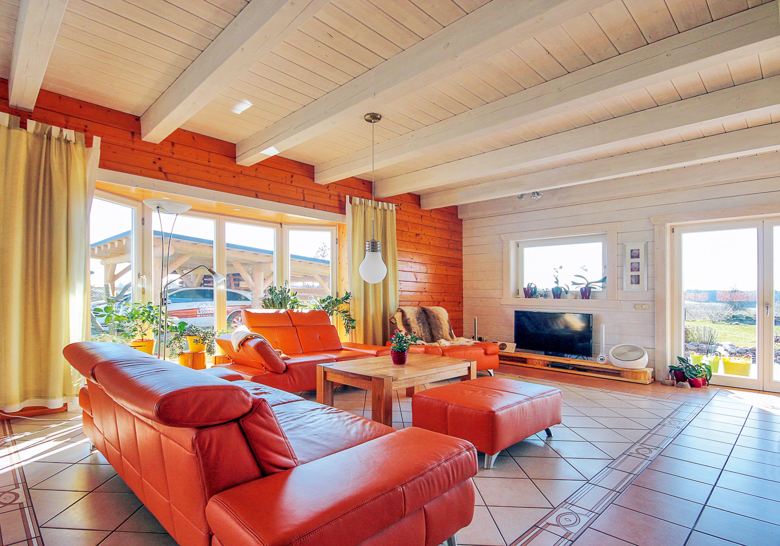Wie fühlt es sich an, in einem Blockhaus aus massivem Holz zu wohnen? Unsere Innenraumgalerie zeigt Wohnräume, in denen sichtbare Holzbalken, warme Oberflächen und großzügige Fensterflächen eine besondere Atmosphäre schaffen. Hier wird deutlich, wie Licht auf Holz trifft, wie Räume wirken und wie natürliches Wohnen im Massivholzhaus aussieht. Lassen Sie sich inspirieren von Eindrücken, die Geborgenheit, Ruhe und zeitlose Beständigkeit vermitteln.