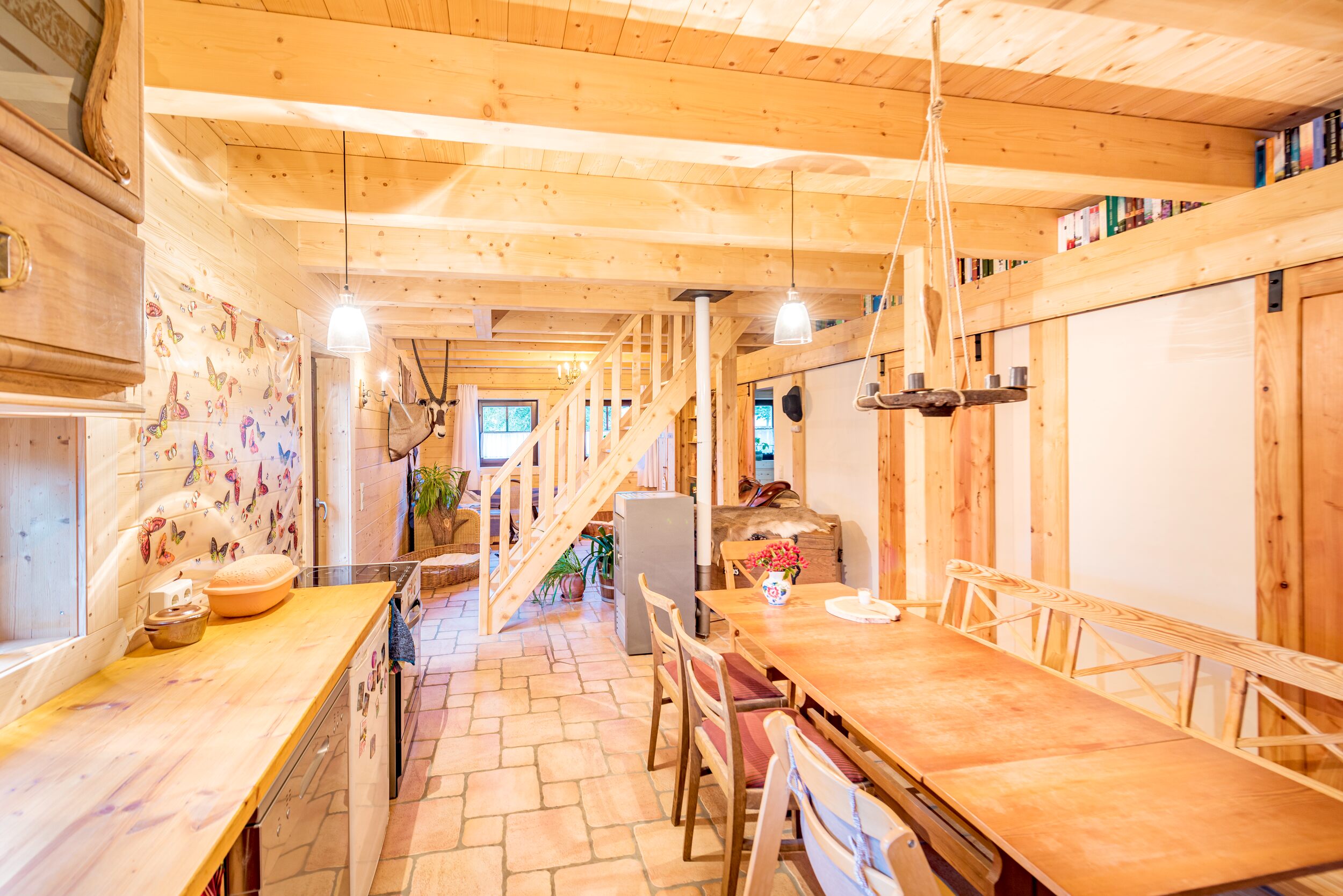 Wie fühlt es sich an, in einem Blockhaus aus massivem Holz zu wohnen? Unsere Innenraumgalerie zeigt Wohnräume, in denen sichtbare Holzbalken, warme Oberflächen und großzügige Fensterflächen eine besondere Atmosphäre schaffen. Hier wird deutlich, wie Licht auf Holz trifft, wie Räume wirken und wie natürliches Wohnen im Massivholzhaus aussieht. Lassen Sie sich inspirieren von Eindrücken, die Geborgenheit, Ruhe und zeitlose Beständigkeit vermitteln.