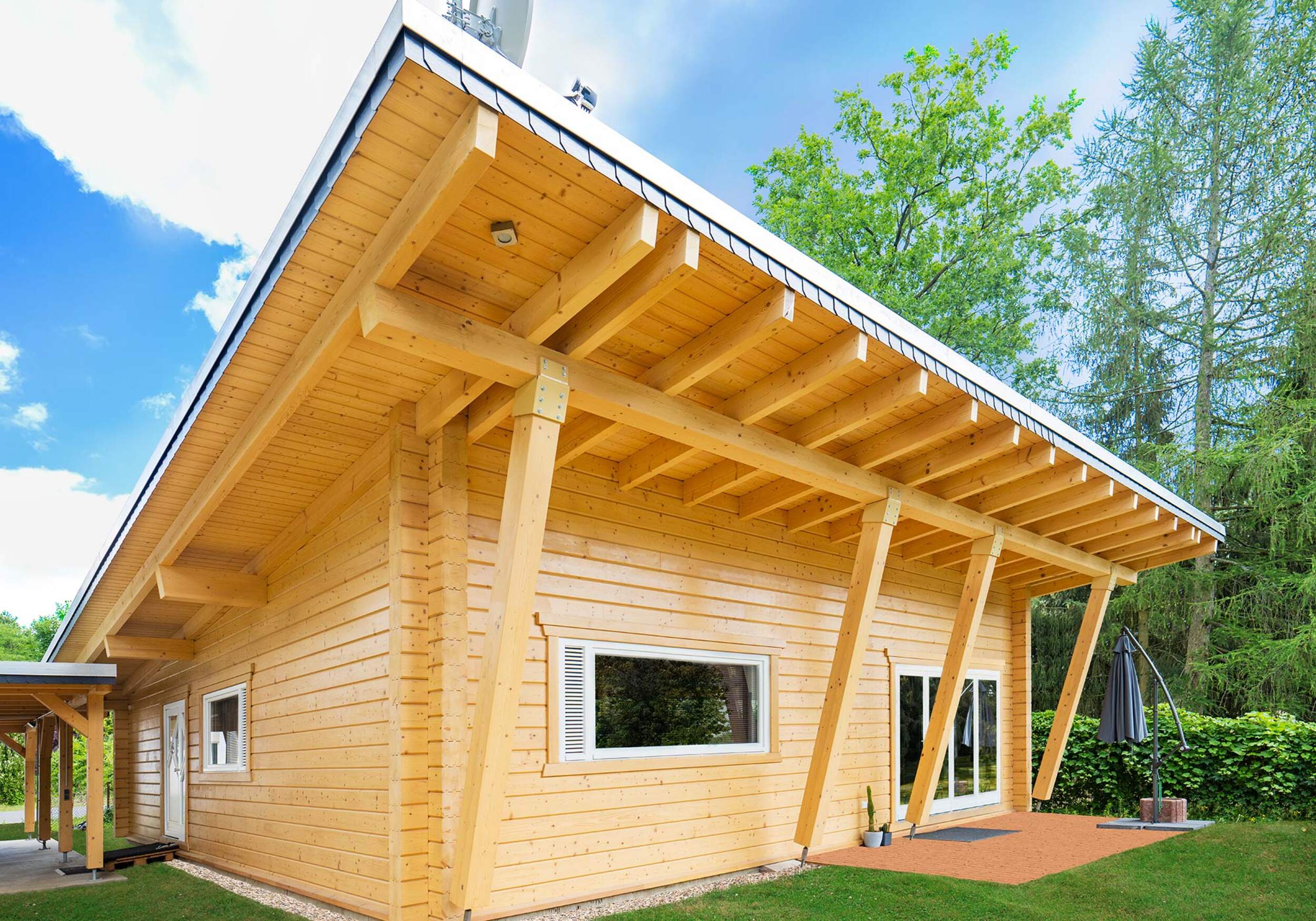 Ein wichtiger Bestandteil der Planung ist die Auswahl der Bauweise. Neben klassischen Holzhäusern aus Blockbohlen stehen auch Häuser in Rundstamm- oder Naturstammbauweise zur Wahl. Unsere Fachberater entwickeln gemeinsam mit Ihnen ein Konzept, das sowohl gestalterisch als auch funktional überzeugt.