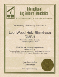 Die „International Log Builders‘ Association“ – kurz ILBA – ist ein Verband, der sich der Förderung des künstlerischen und handgefertigten Blockhausbaus verschrieben hat. Die weltweit agierende Organisation wurde 1974 gegründet und setzt sich seitdem aktiv für die Einhaltung der hohen Standards sowie für die Verbesserung von Techniken ein. Forschung und Entwicklung stehen genauso auf dem Plan, wie das Angebot von Bildungsprogrammen und Stipendien. Die LéonWood® Holz-Blockhaus GmbH ist seit mehreren Jahren aktives Mitglied der ILBA und nimmt regelmäßig an den jährlichen Konferenzen zum Blockhausbau teil.