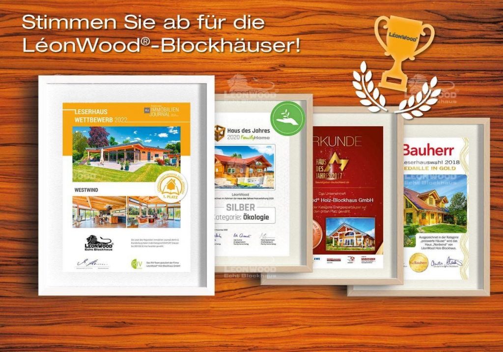 Die LéonWood-Blockhäuser stellen sich wieder zur Wahl und wollen nur eins: gewinnen! Gleich zwei Fachverlage richten auch in diesem Jahr wieder ihre Wahlen zum Haus des Jahres aus. Die …