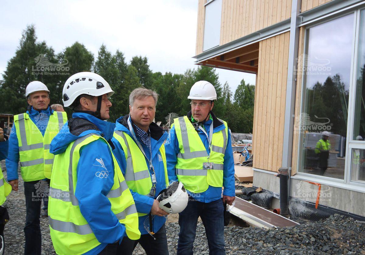 Die Geschäftskontakte zu den finnischen Partnerfirmen von LéonWood® bestehen seit Anfang der 2000er. Eine lange Zeit, in der sich die Expertise entwickelt hat und Freundschaften gefestigt wurden. In regelmäßigen Abständen reist die Geschäftsführung von LéonWood® in den europäischen Norden. Einerseits um den Partnern einen Besuch abzustatten und die Beziehungen zu pflegen, andererseits, um sich von der gleichbleibend guten Qualität in den finnischen Werken der Léonwood Loghomes Finland Oy zu überzeugen. Im August 2017 hatte der Blockhaus-Experte aus der Metropolregion Berlin-Brandenburg etwas ganz besonders geplant: das Treffen zweier Skisprung-Giganten!Der LéonWood®-Markenbotschafter und erfolgreichster deutscher Skispringer aller Zeiten Jens Weißflog begleitet die 17 Mann starke Delegation nach Finnland. Als Erkennungszeichen erhalten alle Mitreisenden eine blaue Wind- und Wetterjacke mit LéonWood®-Branding. Nach anderthalb Tagen Fährfahrt durch die Ostsee legt die aufgeregte Reisegruppe am Hafen von Helsinki an. Hier startet die Reise durch die Republik im hohen Norden. Große Teile der Reise wird LéonWood® im ca. 600 Kilometer entfernten Kuhmo verbringen. Aber auch Lahti und Nurmes stehen auf der Reiseroute.