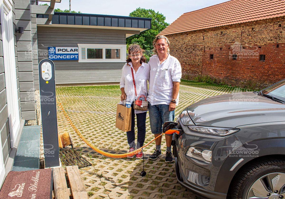 Andrea und Franz Sinseder sind die ersten Kunden, die dieses Angebot in Anspruch genommen haben. Das Pärchen war zur Werkplanung im Hause LéonWood® eingeladen, um ihr neues Rundstammhaus „Alaska“ zu besprechen. „LéonWood® ist damit schon innovativ“, lobt Franz Sinseder. „Ich kenne Ladesäulen eigentlich nur von der Autobahn oder vom Supermarkt. Bei einer Firma habe ich es bisher noch nicht erlebt“, ergänzt seine Frau Andrea. Das Paar fährt sein E-Auto seit Dezember 2020 und ist mittlerweile mehr als begeistert von dem Elektronikfahrzeug: „Es ist ökologisch sehr sinnvoll. Wir haben Solar auf dem Dach und tanken jetzt unseren eigenen Strom. Wir haben also immer ein aufgetanktes Auto“, sagt Franz. Aus Südhessen zur Werkplanung nach Maust angereist, hat die Familie eine rund 500 Kilometer weite Strecke zurückgelegt: „Auf der Autobahn macht man zwei Pausen á 30 Minuten, was auch für den Fahrer sehr angenehm ist. Sowohl Auto, als auch Fahrer tanken dann wieder auf. Und das macht wirklich Sinn!“ beschreiben uns die beiden im Interview. Zu ihrem ökologischen Auto realisieren sich die beiden nun auch ein ökologisches Blockhaus und verraten ganz angetan: „Darauf haben wir 25 Jahre lang gewartet!“
