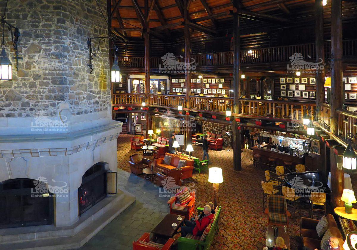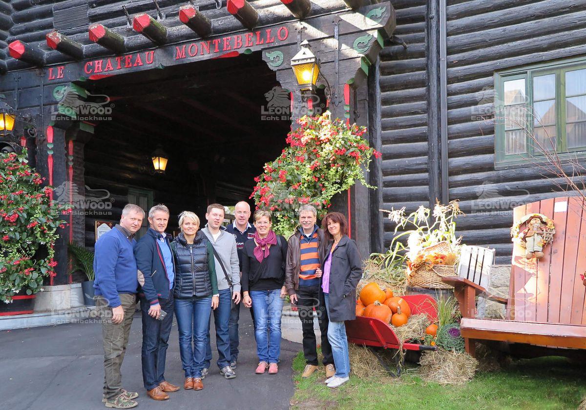 Neben den Veranstaltungen, die im Rahmen des ILBA-Kongresses stattfanden, war für die Deutschen Reisenden besonders das Wohnen „Château Montebello“, dem größten Blockhaus der Welt, von Interesse. Das Hotelgebäude entstand im Jahr 1930 nach Plänen von Hubert Saddlemire (halb Schweizer, halb Amerikaner), die durch die Schlösser in den Schweizer Alpen inspiriert wurden. So war das Hotel in der Vergangenheit unter anderem mehrmalige Gastgeberstätte für internationale Gipfelveranstaltungen. Jens Weißflog, selbst Hotelbesitzer, hatten es besonders die dicken Stämme angetan: „Die Dimension der Hotellobby mit dem riesigen Kamin und das Feeling in einem solch historischen Gebäude ist unbeschreiblich“, staunt der mehrmalige Olympiasieger. Er bedankte sich ganz herzlich bei der Geschäftsleitung der LéonWood® Holz-Blockhaus GmbH, eine solche Reise antreten zu dürfen und Deutschland diesmal nicht auf Skiern, sondern im Blockhausbau vertreten zu dürfen. Für ihn war es selbstverständlich der Einladung von Dieter Schenkling zu folgen.