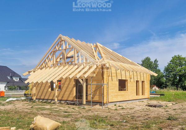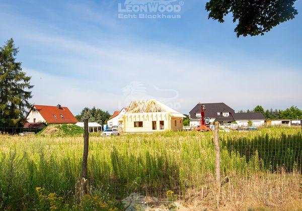 Hier baut ein alter LéonWood®-Freund. Johannes Thiele war vor einigen Jahren selbst als Projektplaner im Unternehmen tätig. Er entschied für sich in dieser Zeit frühzeitig: „Irgendwann baue ich mal ein LéonWood®-Holzhaus.“ Die Lebenswege trennten sich, Johannes entwickelte sich weiter. Der Traum und die Freundschaft zu LéonWood® blieben. Sieben Jahre später, im Juli 2023, war es soweit: sein individuell geplantes „Alaska“ wurde geliefert. Als gestandener Zimmerer-Meister hat er es natürlich selbst gebaut, sogar fast ganz allein. Wir haben ihn auf seiner Baustelle im Brandenburgischen Landkreis Oder-Spree besucht und ihn über den Baufortschritt sowie seine weiteren Pläne ausgefragt.