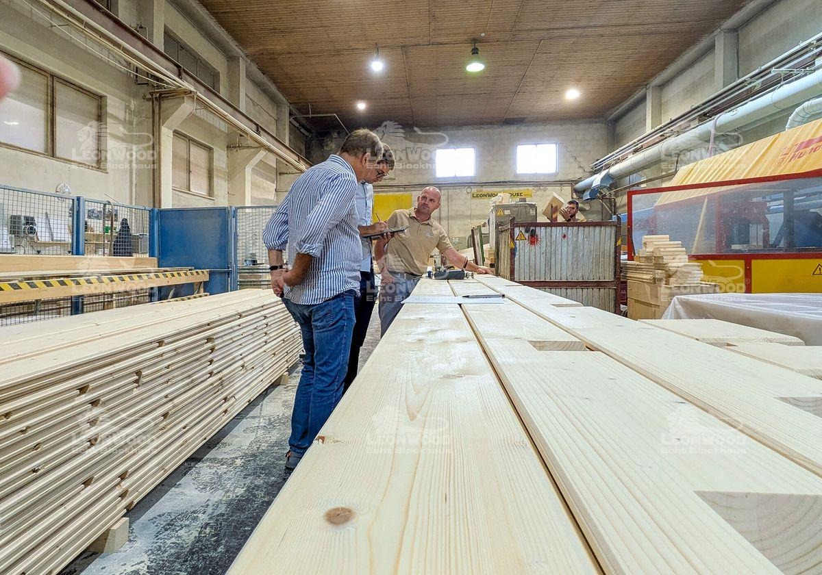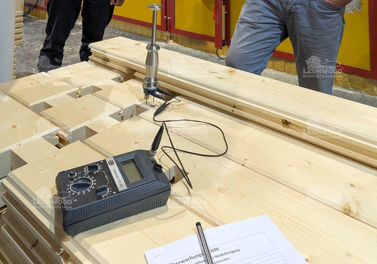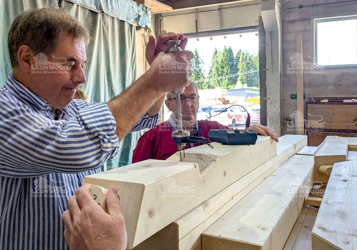 Geprüft wird seit Jahren durch den öffentlich bestellten und vereidigten Sachverständigen für Holzhausbau Josef Egle. Er leitet die Überwachungs- und Zertifizierungsstelle für die RAL-Gütesiegel, welche Holzbau-Unternehmen einen hohen technischen Standard sowie die Dauerhaftigkeit und den Werterhalt ihrer Produkte bescheinigt. Von Anfang an nimmt Josef Egle die LéonWood®-Blockhäuser, sowohl im Werk, als auch auf den Baustellen genau unter die Lupe. Geprüft wird dabei die Materialqualität, die fachgerechte Herstellungstechnik sowie deren regelmäßige Wartung- und Instandhaltung, die Bauphysik, personelle Ressourcen und die internen Prozesse, von der Bauvorbereitung und Dokumentation bis hin zur Abnahme des Baus. Laut Egle bestehen wir die RAL-Prüfungen jedes Jahr mit Bravour. Mit dem RAL-Blockhausbau-Siegel belegen wir also, dass jeder Arbeitsschritt – von der Holzauswahl bis zum letzten Nagel – systematisch kontrolliert und geprüft wird.